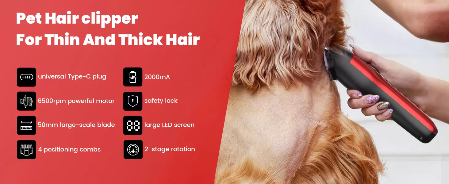 Cortapelos profesional para mascotas. Su hoja ancha, junto con su diseño inalámbrico y silencioso, permite un corte rápido y sin estrés para todo tipo de pelajes.
