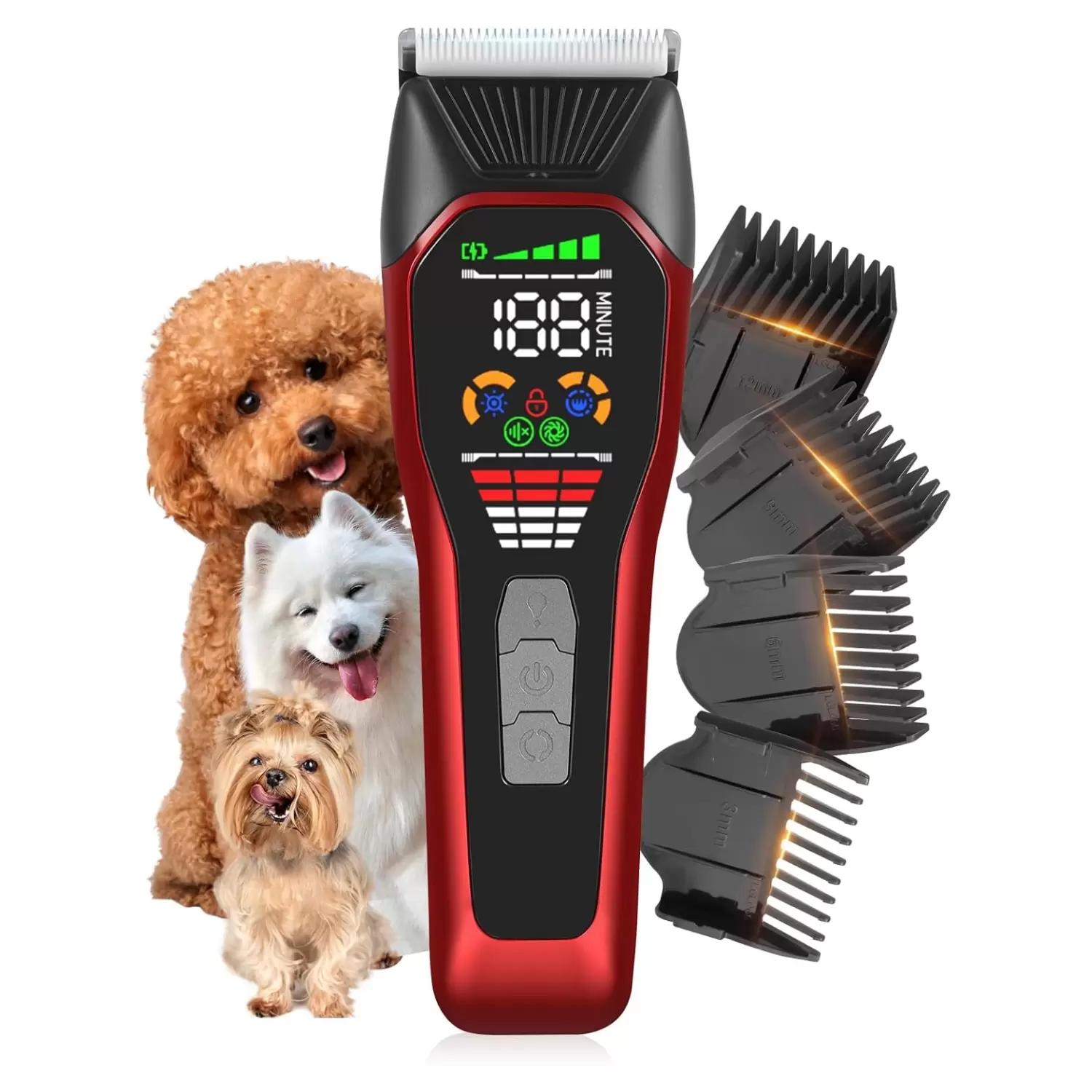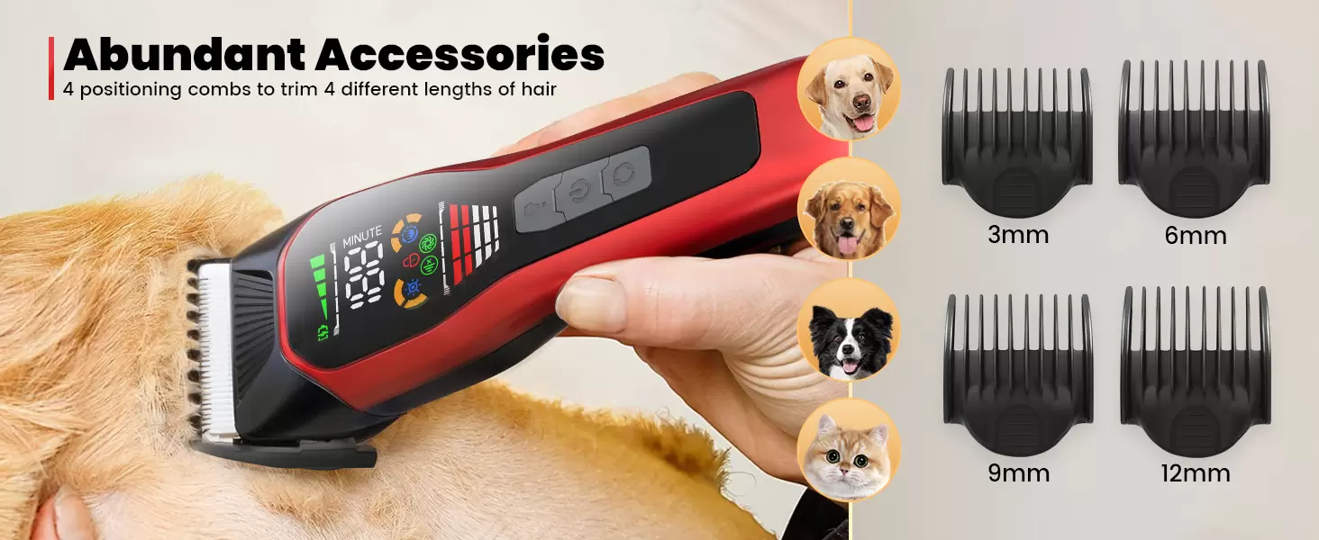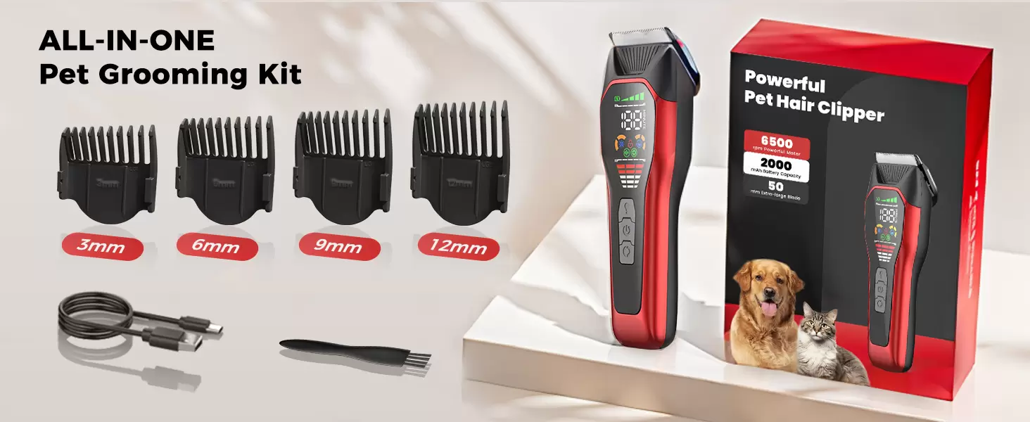 5 accesorios incluidos: nuestros cortaúñas para perros vienen con todo lo que necesitas para empezar, incluyendo 1 cortaúñas Founouly para perros grandes, 1 cepillo de limpieza, 1 cable de carga y 2 peines protectores