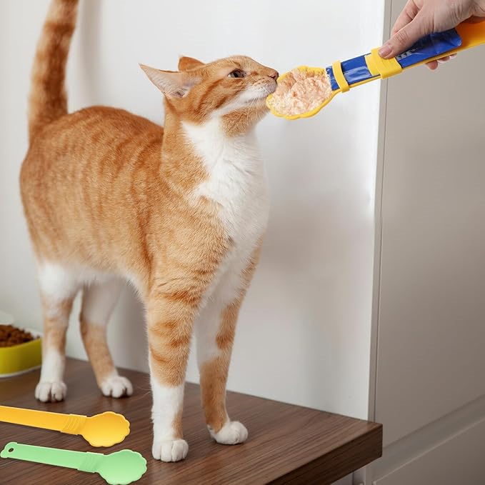 - Disfruta de la alimentación: puedes fortalecer tu vínculo con tu mascota con nuestra cuchara de comida para gatos para alimentos húmedos. Di adiós a esas tediosas horas jugando con el abrelatas y pasa más tiempo vinculándote con tu querida mascota. Puede resolver el problema del goteo de las tiras de comida para gatos. Amigos, ahorre tiempo, esfuerzo y preocupación, ¡es así de simple!