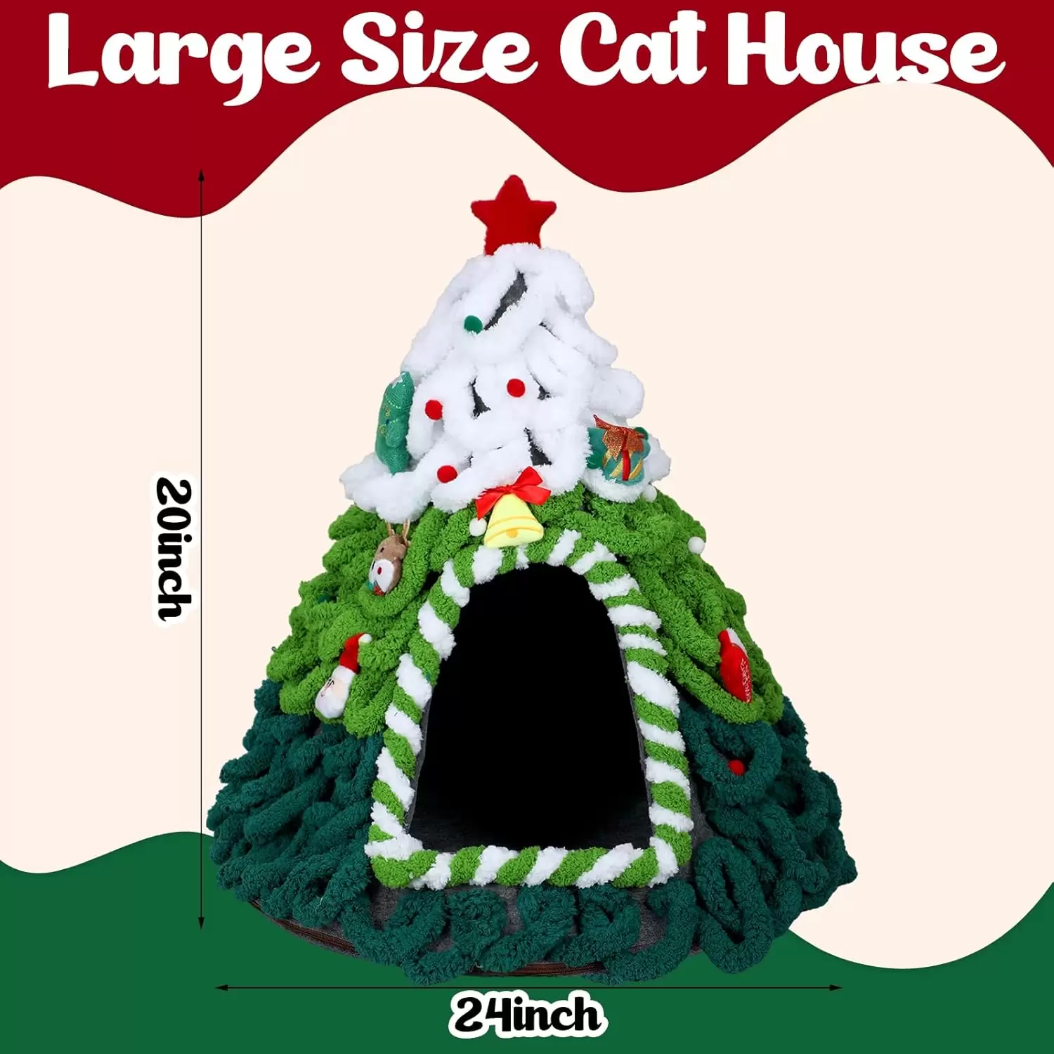 Cueva para Gatos (51x51x61 cm) Diseño Árbol de Navidad | Totalmente Montada y Antideslizante