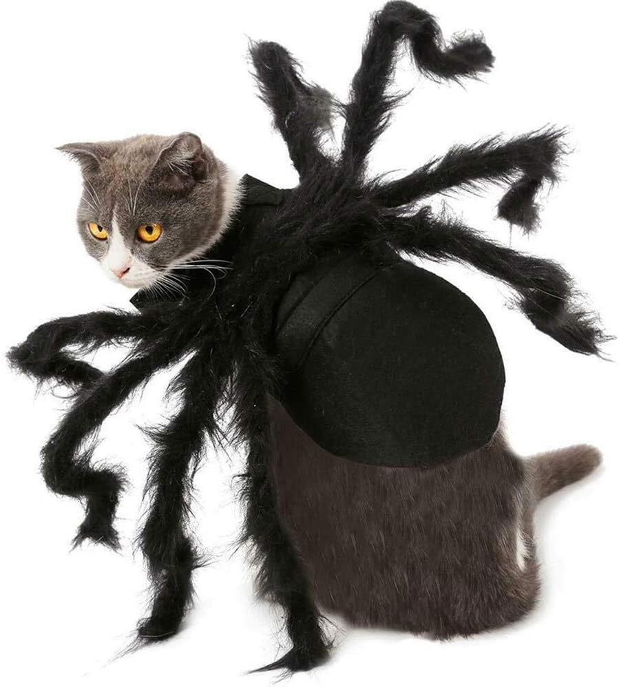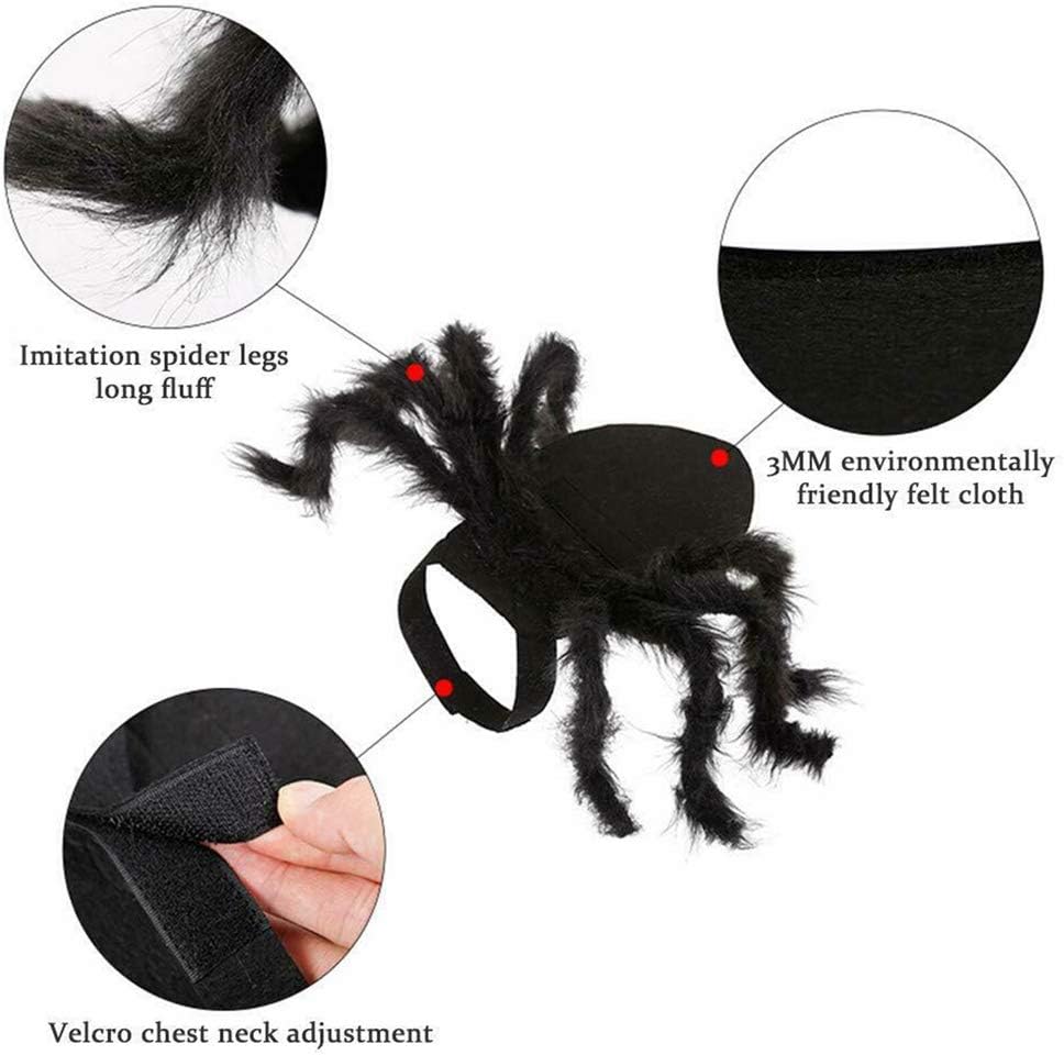 Disfraz de araña de Halloween: el disfraz de araña viene con 8 patas peludas realistas y vívidas. El disfraz de araña transforma a tus gatos o cachorros en una araña negra gigante. Haz que tu mascota sea un punto de atracción de la noche de Halloween.