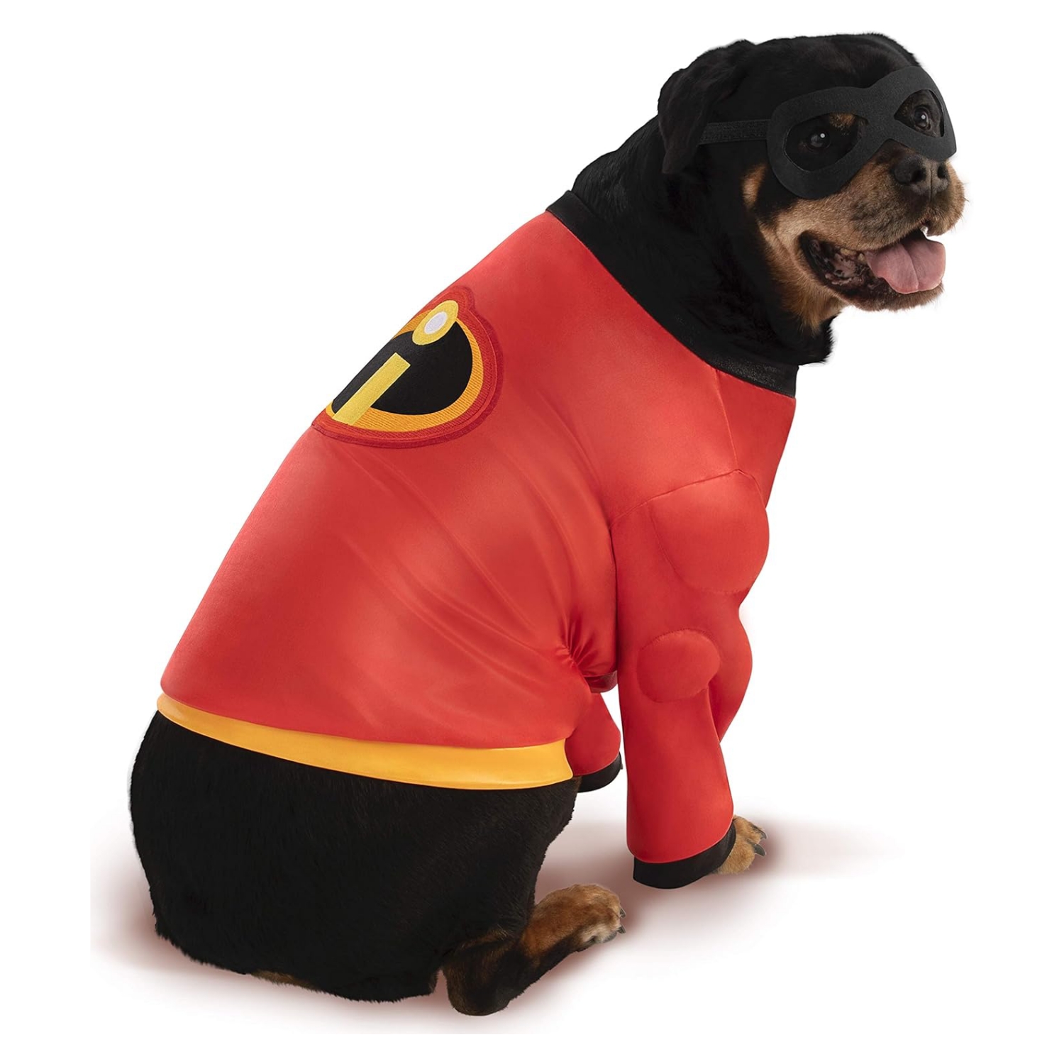 Emocionante opción de disfraz: la camiseta y la máscara de los Increíbles 2 hacen que tu amigo peludo sea parte de la acción de superhéroes.