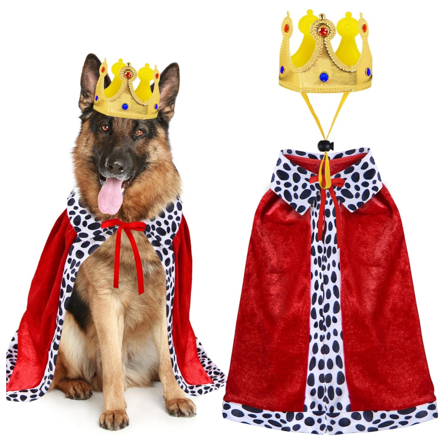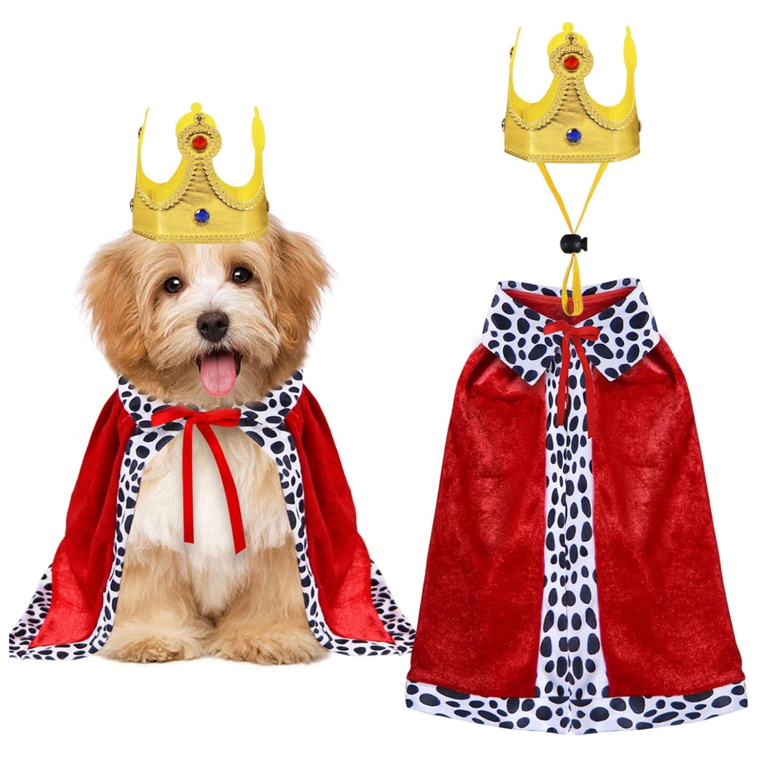 Amplia aplicación: el disfraz de rey para perro es ideal para disfraces de Halloween, fiesta de Halloween, día del rey y la reina, fiesta del rey príncipe, regalo de Navidad, vacaciones, accesorios de fotos, uso diario, etc.
