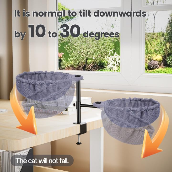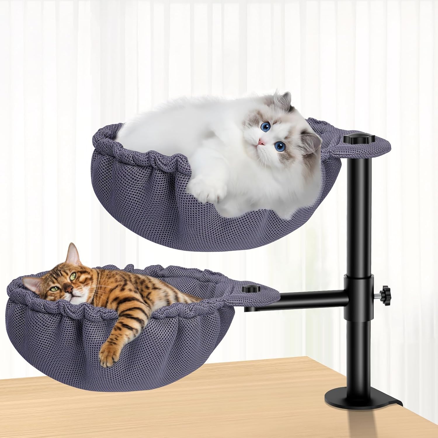 Diseño de doble cubierta para varios gatos: el escritorio para gatos para 2 gatos proporciona un doble nivel de espacio separado para que varios gatos descansen, ahorrando mucho espacio. Nuestra mesa de mesa para gatos con 2 percas de escritorio para gatos está hecha de metal resistente y tiene un nivel superior e inferior. el nivel superior soporta 18 libras, y el nivel inferior tiene capacidad para 15 libras. Nuestra percha de escritorio doble para gatos es adecuada para familias de varios gatos. Se fija fácilmente a tu escritorio y se puede ajustar a tu posición preferida