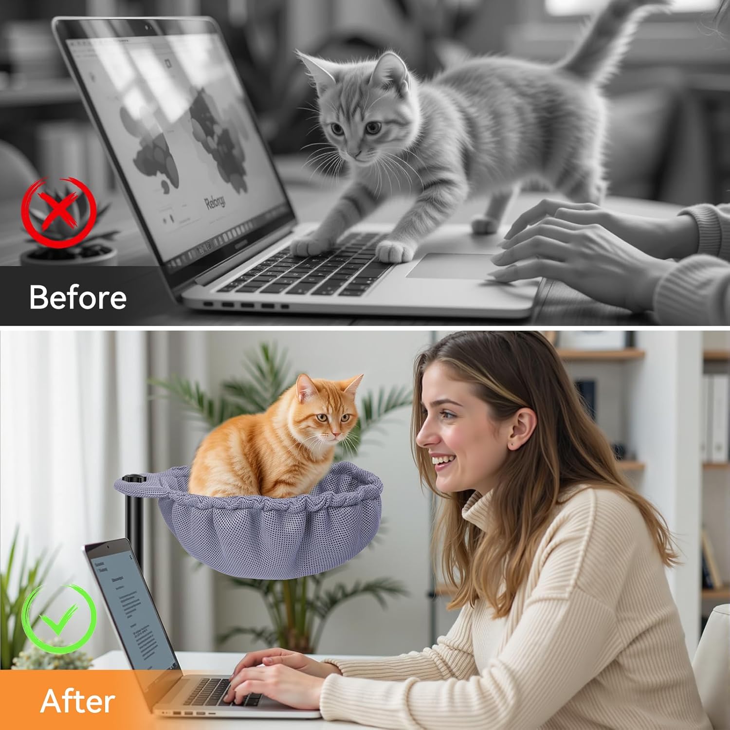 Di adiós al desorden: nuestra cama de escritorio para gatos permite que tu amigo felino descanse cerca mientras limpia el espacio de tu escritorio, aumentando así la eficiencia de tu trabajo. La cama de escritorio para gatos proporciona un refugio acogedor para tu gato, manteniéndolo silenciosamente contenido para que puedas concentrarte en tus tareas. Sin más travesuras disruptivas, tanto tú como tu compañero peludo pueden disfrutar de un estado de felicidad