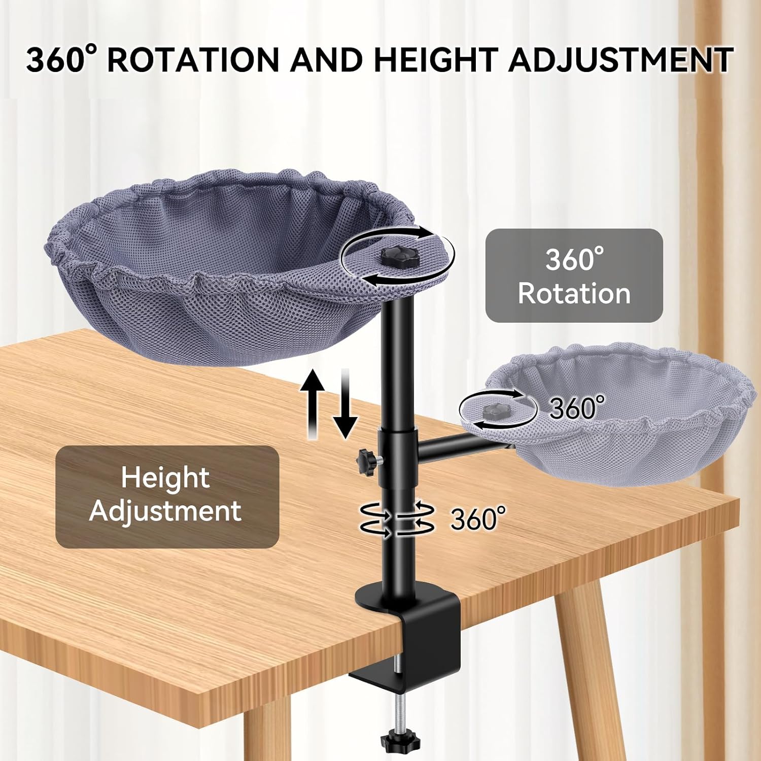 Rotación de 180° y ajuste de altura: nuestra cama para gatos para escritorio cuenta con una rotación de 180° y ajuste de altura de hasta 3 pulgadas. Con una base compacta que mide solo 2.8 pulgadas de largo y 2.7 pulgadas de ancho, el escritorio de cama para gatos maximiza tu espacio de trabajo mientras mantiene un ambiente ordenado. Tu gato puede descansar cómodamente o explorar su entorno libremente sin abarrotar tu espacio de trabajo, asegurando que todo se mantenga organizado