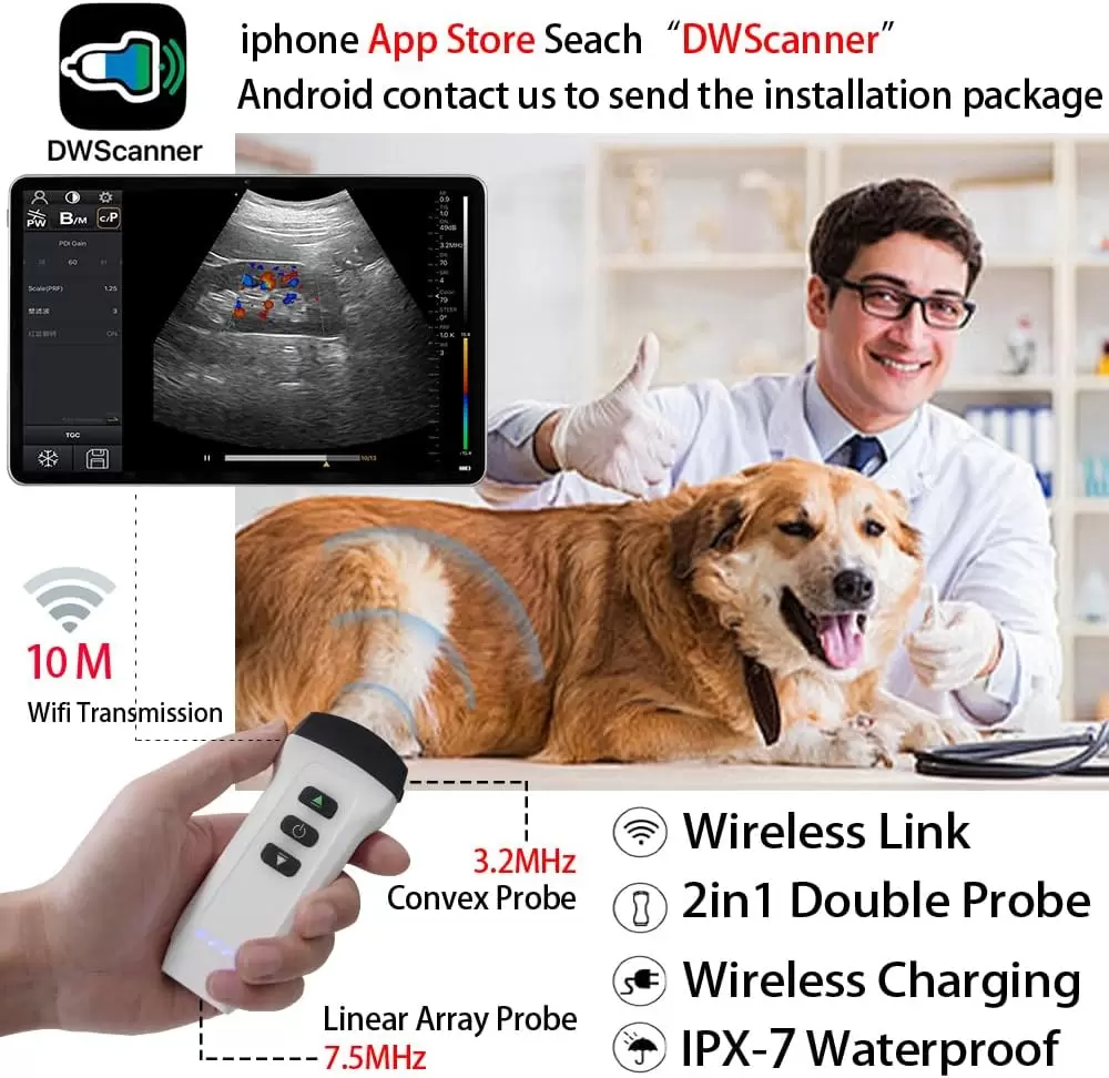 Ecógrafo Doppler Color Inalámbrico | Doble Sonda 3.2 y 7.5MHz para Veterinarios y Clínicas