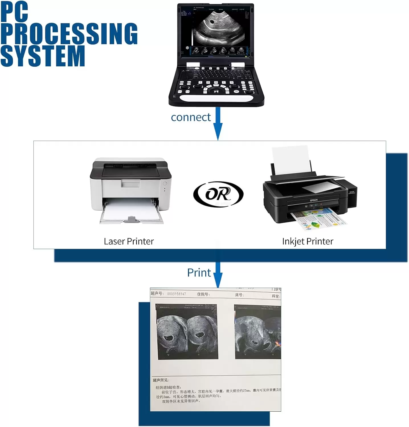 Conéctese directamente a una variedad de impresoras para imprimir informes sin problemas, eliminando la necesidad de un ordenador separado. Esta característica mejora la eficiencia en los flujos de trabajo clínicos