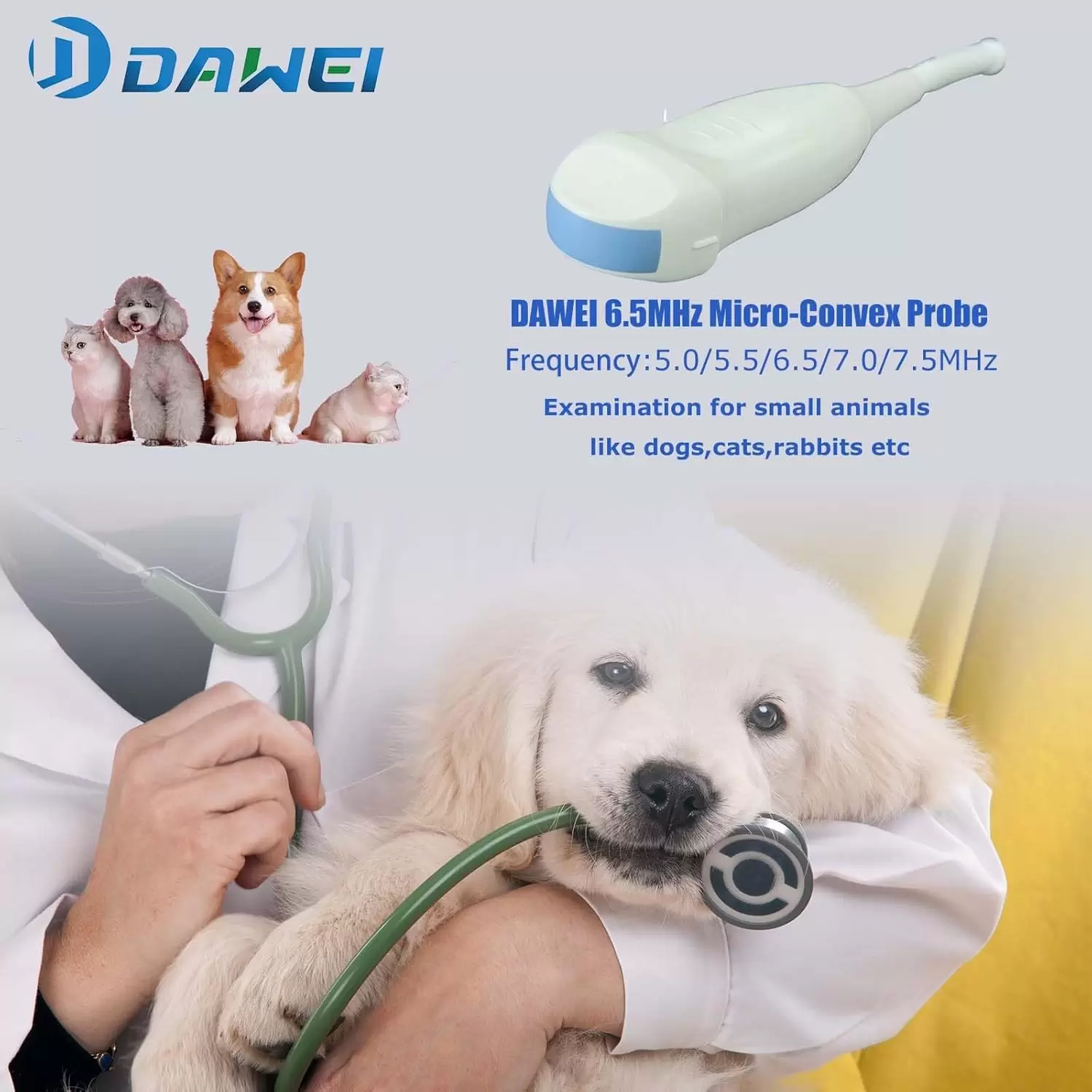 Ecógrafo Veterinario Portátil DAWEI | Pantalla HD 12.1″, Sonda Micro-Convexa y Batería de Larga Duración