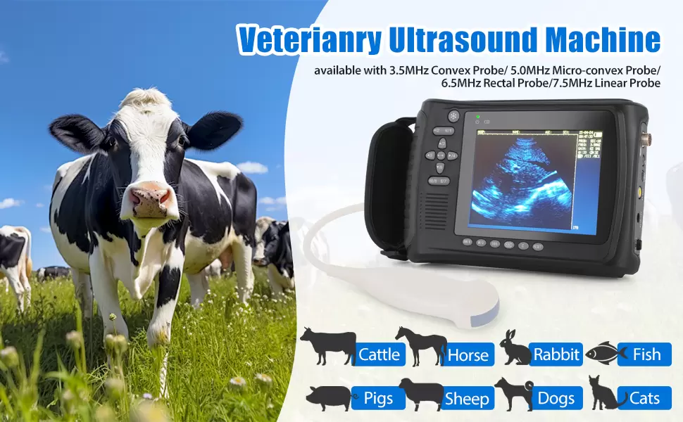 Diagnóstico Multiespecie: Diseñado para un amplio rango de animales, desde perros, gatos y conejos, hasta cerdos, ovejas, cabras y ganado. Es perfecto para la detección de embarazo en animales pequeños y grandes, e incluso para exámenes en peces.