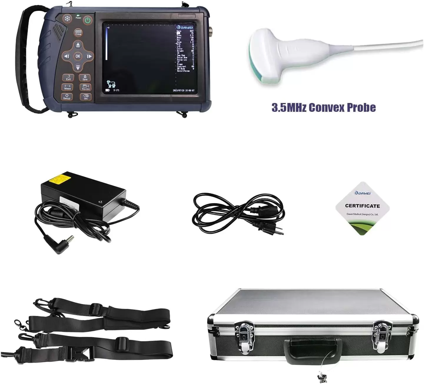 Esta máquina de B-ultrasonido tiene 5 modos de visualización: B, BB, 4B, BM, enfoque electrónico de M, rango de frecuencia ajustable. y puede apoyar sonda convexa/sonda rectal/micro convexa/linear/grasa trasera. La máquina de sonido DAWEI B-Ultra tiene una batería recargable de iones de litio de 2600 mAh, para más de 4 horas de trabajo. Almacenamiento permanente de 32 GB para un almacenamiento y reproducción rápidos de imágenes