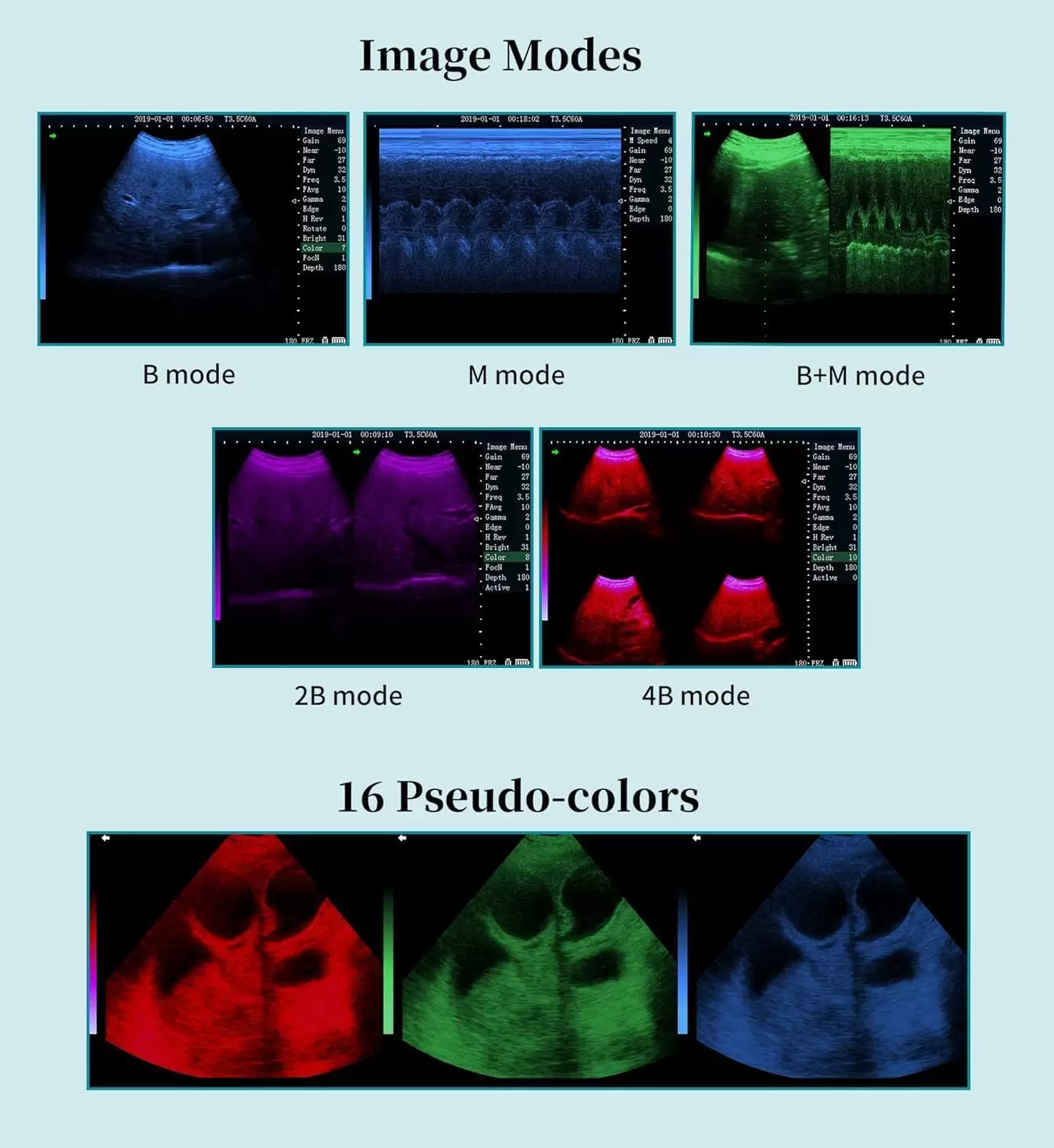 | Pseudo colores | Soporta 16 tipos de pseudo colores |