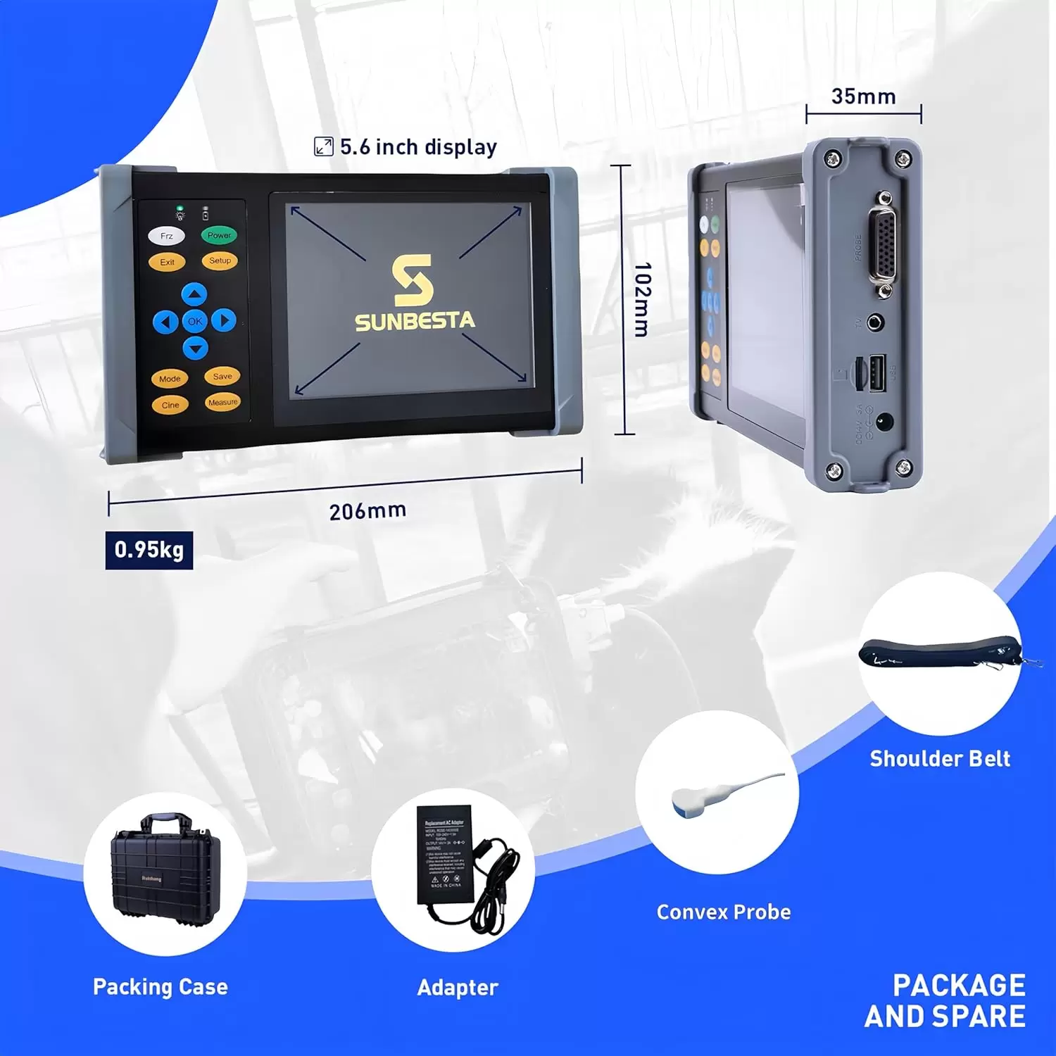 Ecógrafo PDA A20 ultra ligero (950 g). Sonda Convexa 3.5 MHz. Perfecto para diagnóstico de gestación en campo y clínica. Incluye mediciones obstétricas para 8 tipos de animales.