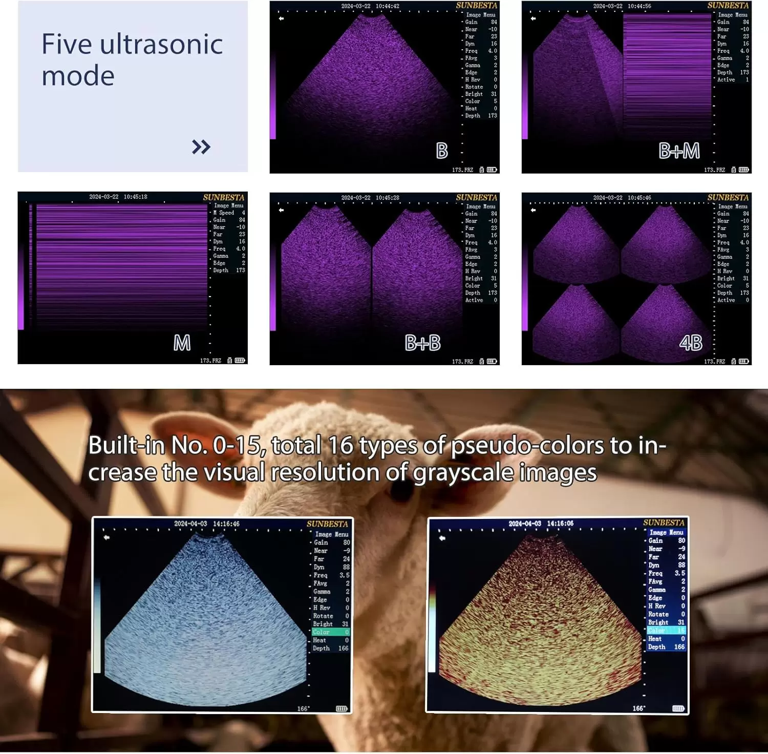 Imágenes de Alta Resolución: Ofrece imágenes en escala de grises con 16 mejoras de pseudocolor y 5 modos de visualización (B/M/4B), lo que garantiza una alta resolución y un diagnóstico claro.