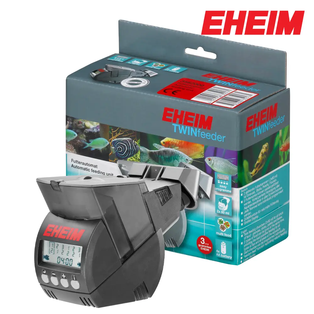 El EHEIM TWINfeeder es un alimentador automático avanzado con dos compartimentos independientes, ventilación activa y programación individual. Ideal para mantener una dieta equilibrada y personalizada en tu acuario.