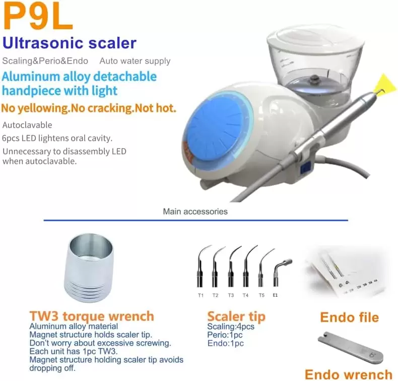 Escalador Ultrasónico Dental Veterinaria P9L | Pieza de Mano LED Autoclavable Compatible con EMS