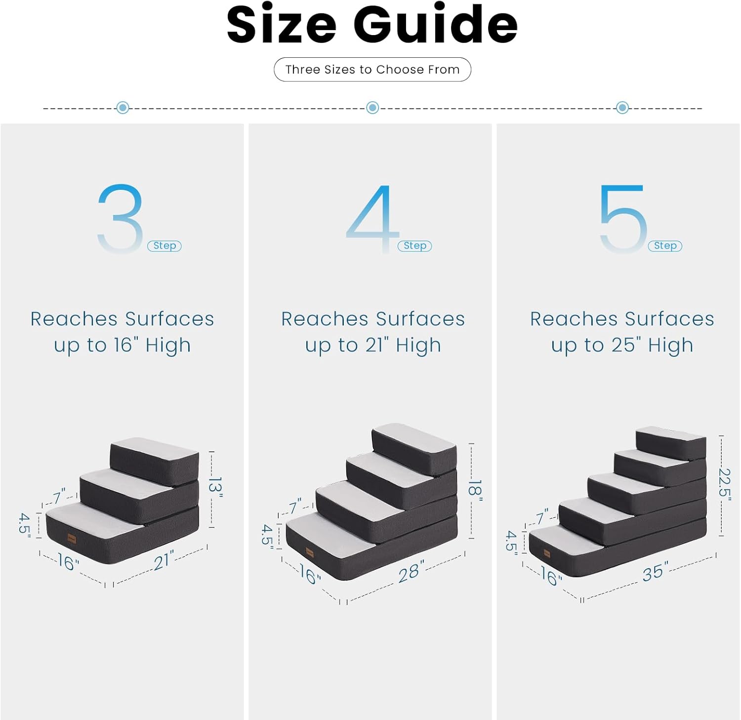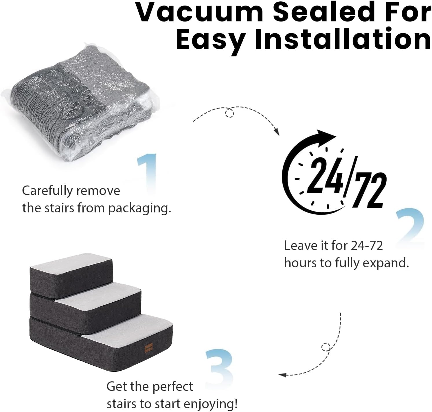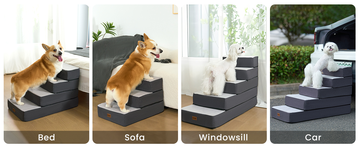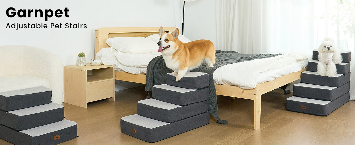Altura ajustable: las escaleras para perros Garnpet te permiten apilar capas libremente para que coincida con los muebles, acortar a 2-3 escalones para sofás bajos y 4-5 escalones para camas altas. Nota: Después de desembalar, deje que la espuma se expanda completamente durante 72 horas para una máxima comodidad.