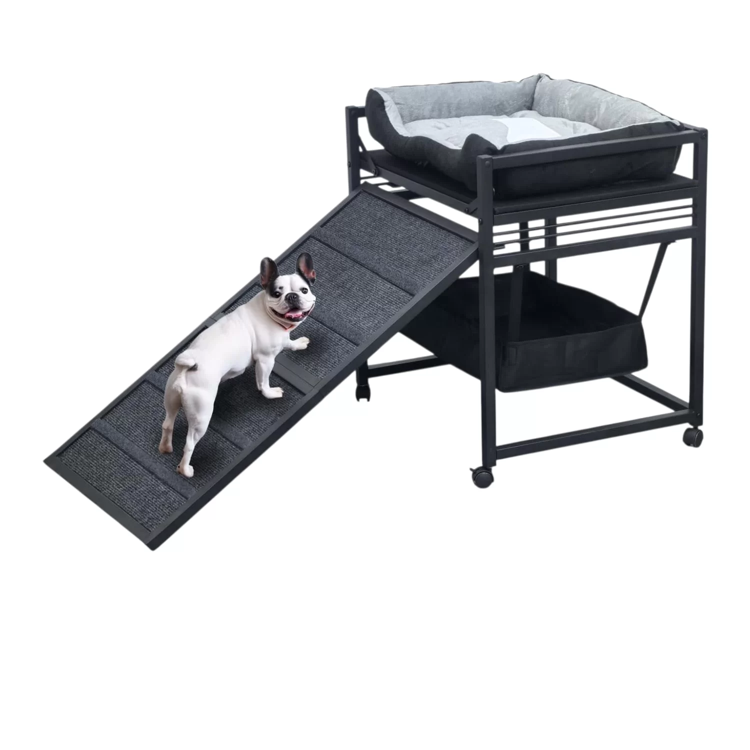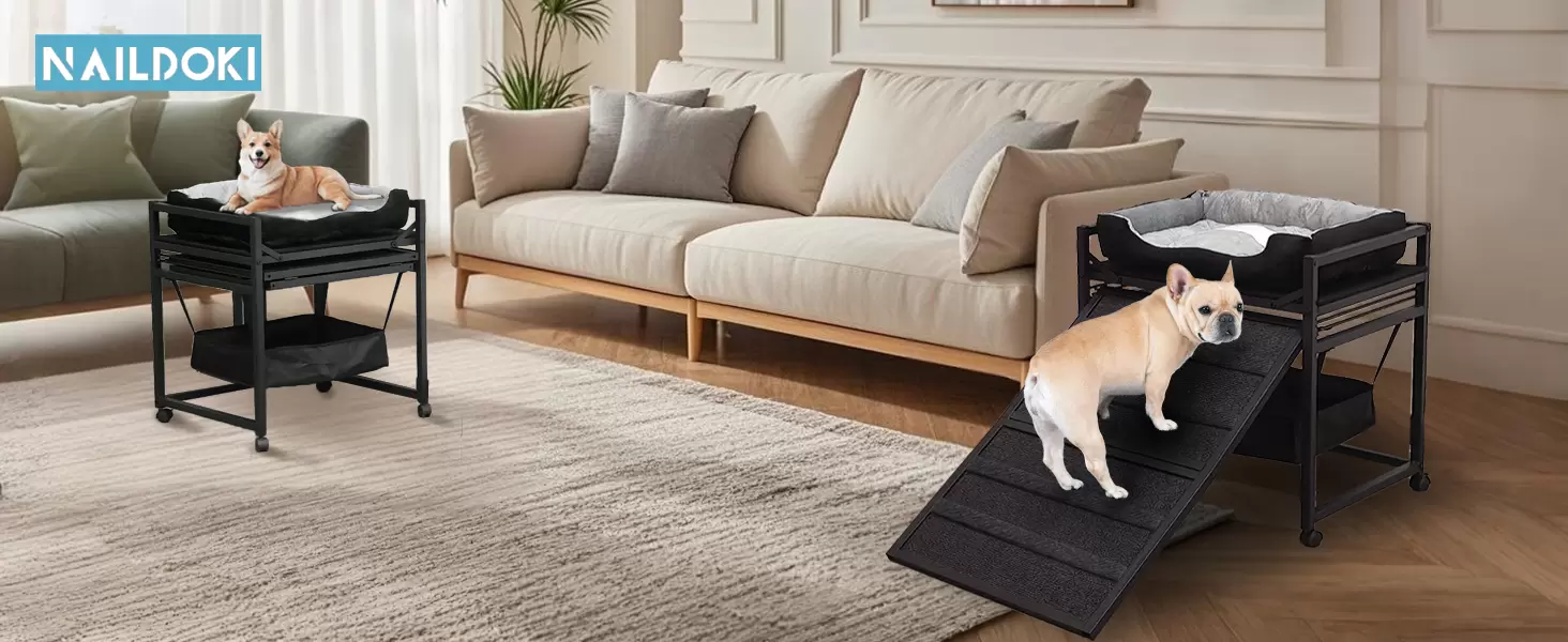 Escalera de Ascenso para Mascotas 3 en 1 | Nido con Almacenamiento, Ortopédica y Móvil con Ruedas