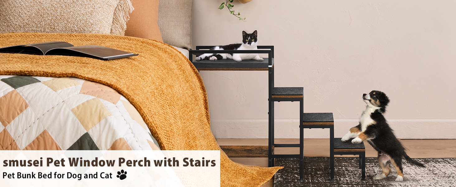 Diseño único y versátil. Tamaño: 33.6 pulgadas de largo x 13 pulgadas de ancho x 24.8 pulgadas de alto, los modernos muebles para mascotas están diseñados con una percha de ventana, una cama de salón/litera, escaleras para perros y cojín extraíble, proporcionando a los gatos y cachorros un espacio cómodo para jugar y dormir. Colócalo cerca de la ventana, para que tu mascota pueda disfrutar de la vista exterior y aumentar su felicidad