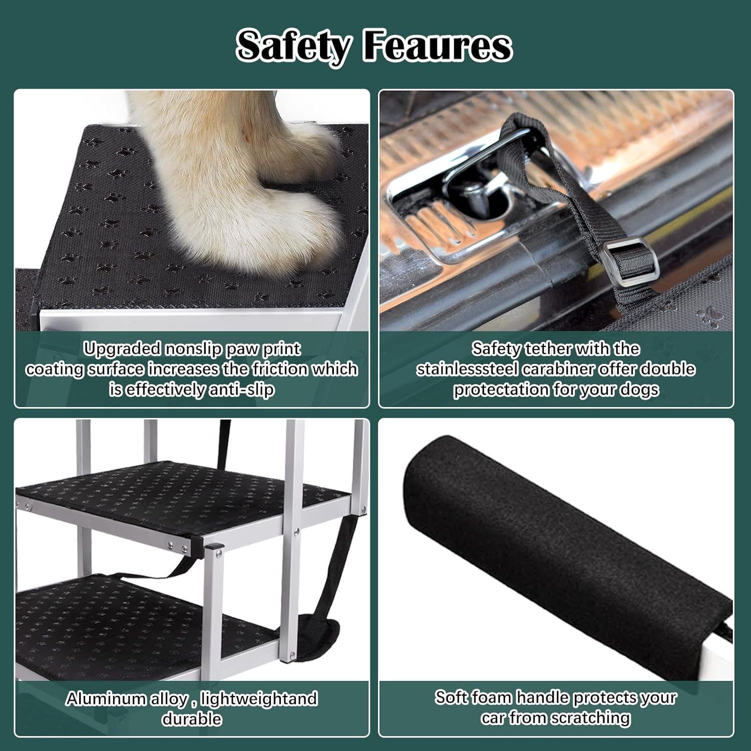 Escalera Plegable Aluminio para Perros – Autos Camionetas Soporta 90 kg 71x129x50 cm