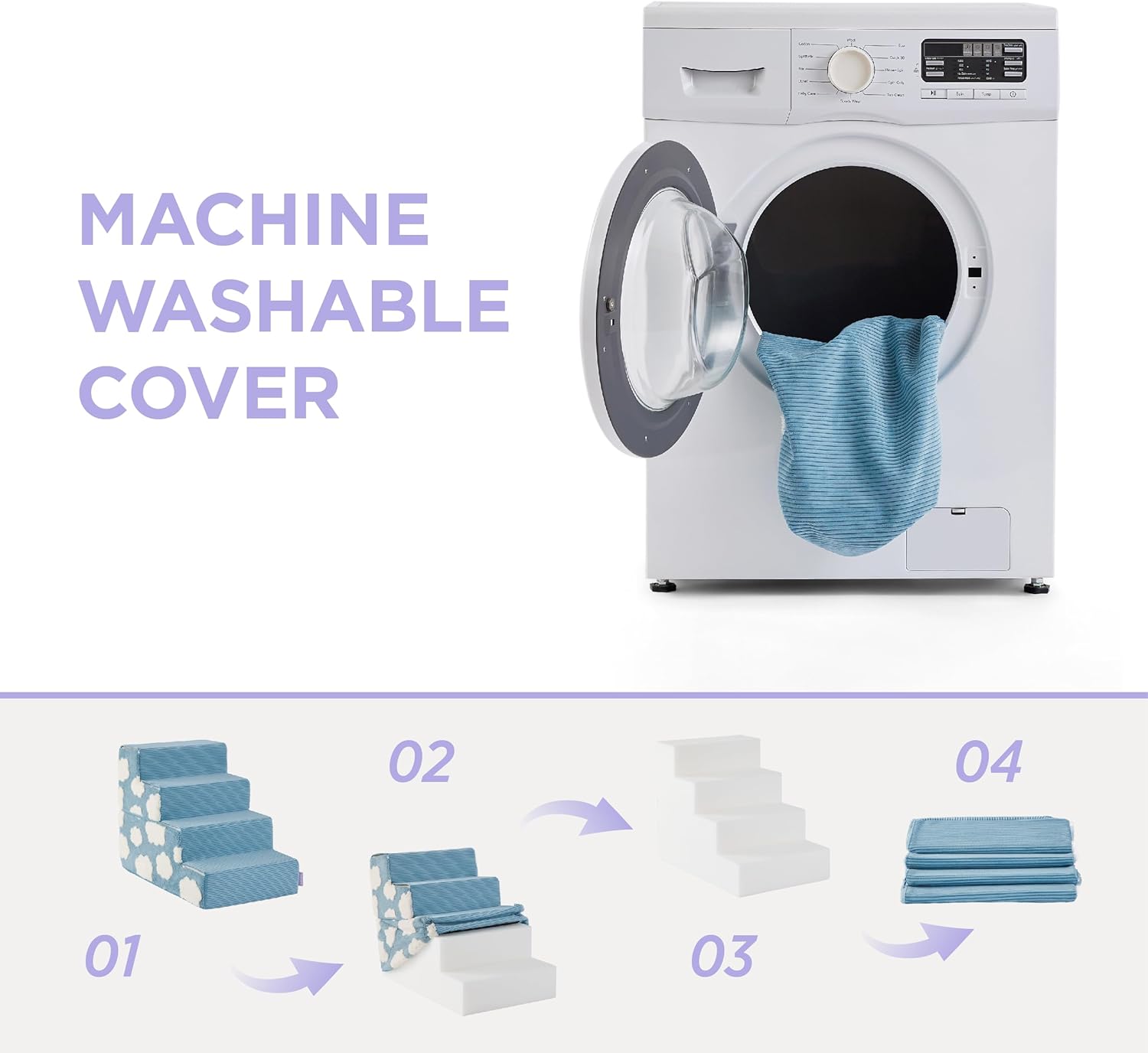 Opciones de tamaño y color: el modelo de 3 pasos mide 13.5 pulgadas de alto, perfecto para que las mascotas pequeñas alcancen sofás o sillas bajas; la versión de 4 pasos, de 18 pulgadas, permite un fácil acceso a sofás o camas; el modelo de 5 pasos mide 22.5 pulgadas, ideal para camas o autos más altos; elige entre tres colores: azul claro, verde pantano y morado iris, para que coincida con tus preferencias; Nota: espera 2 4/28.3 in horas para que la espuma se expanda completamente después de desembalar de su embalaje sellado al vacío para garantizar una comodidad óptima para tu mascota