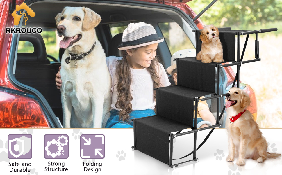 Paso antideslizante y más amplio: los peldaños para perros cuentan con una superficie de goma antideslizante mejorada para evitar que los perros se resbalen mientras escalan. Además, los escalones son más anchos y profundos, miden 16 x 7 pulgadas, asegurando que tu mascota tenga suficiente espacio para pararse cómodamente
