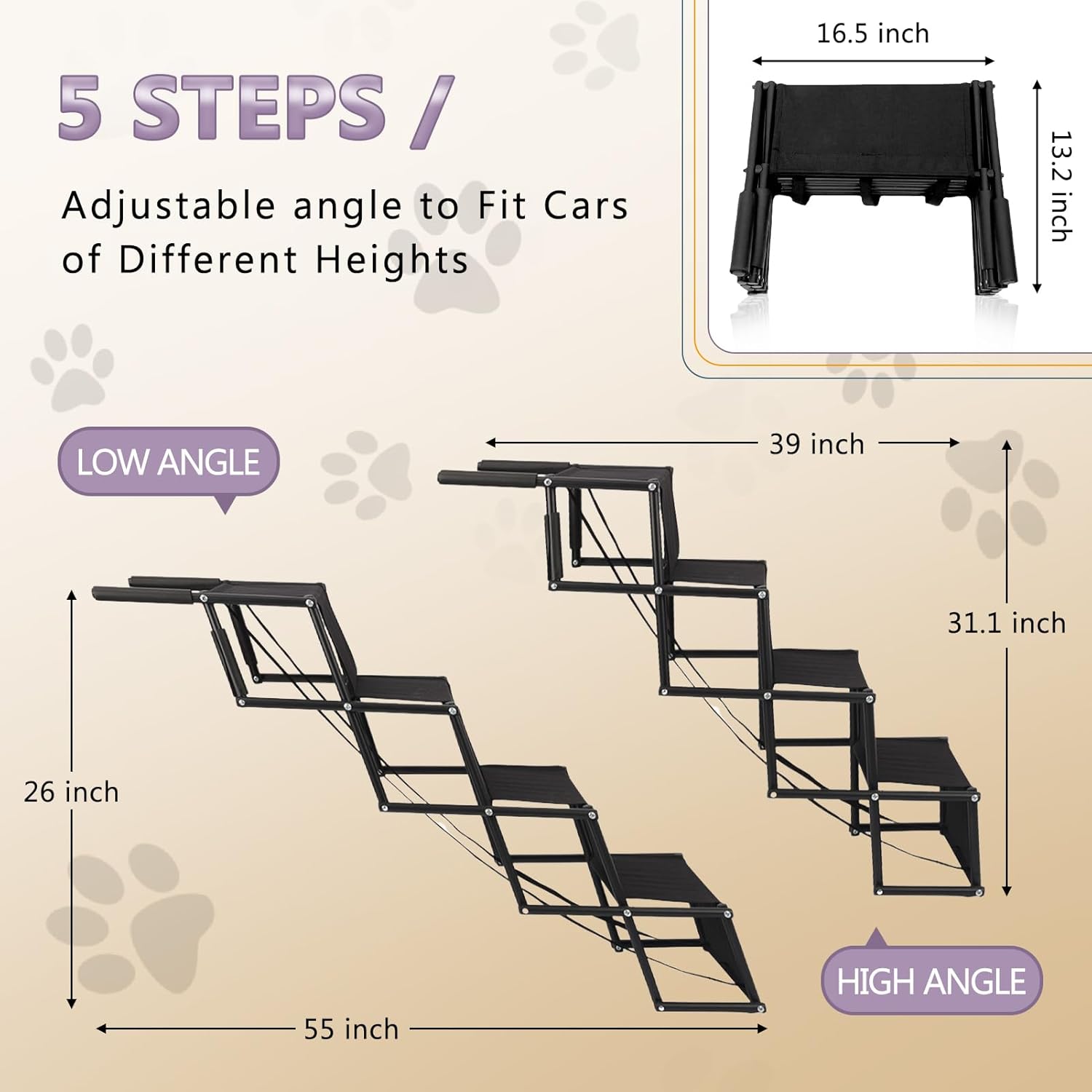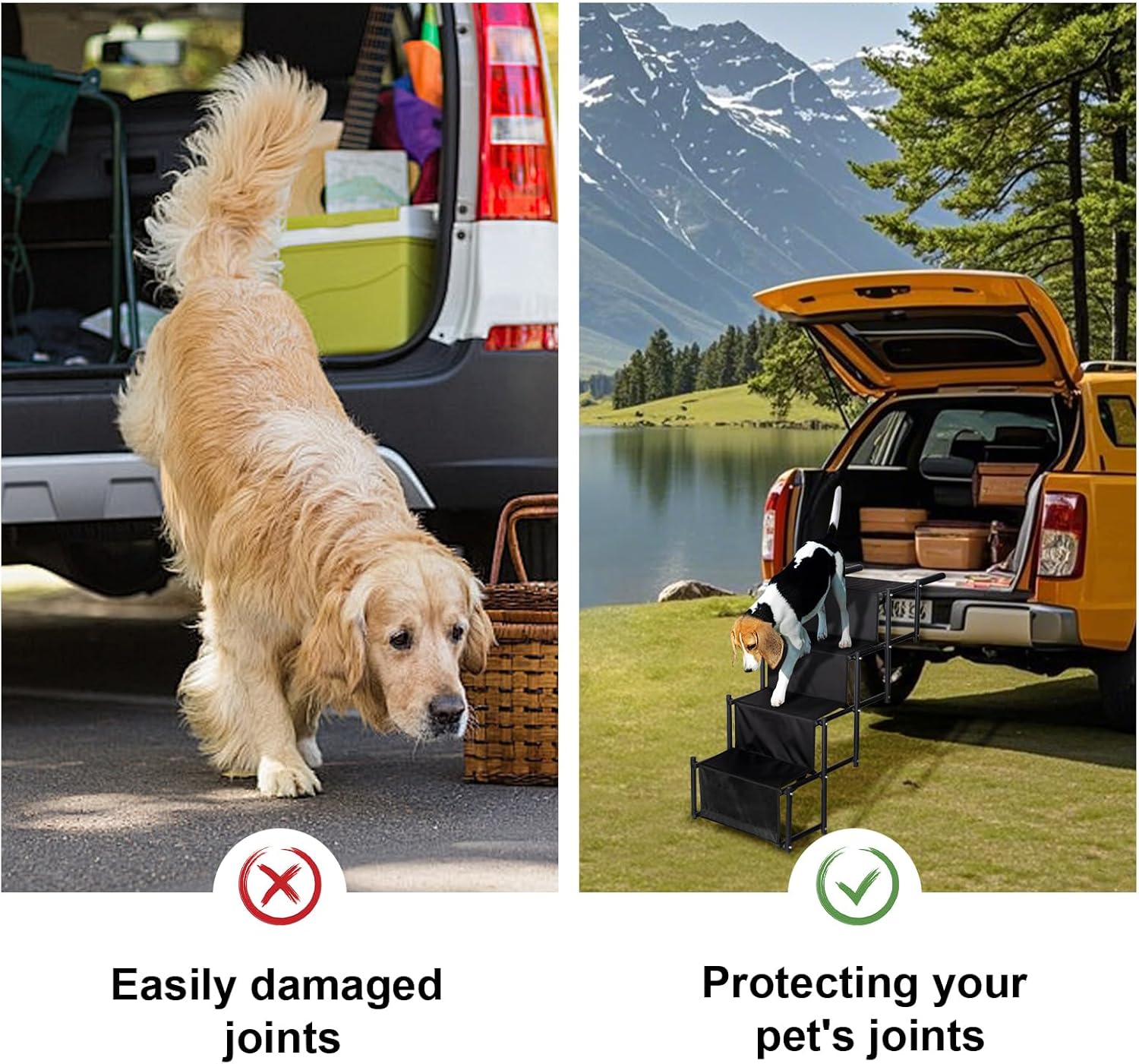 Diseñado para la comodidad: las escaleras plegables para perros están diseñadas específicamente para proporcionar una experiencia de escalada cómoda para tu amigo peludo. Ya sea que tengas un perro de patas cortas, mayor, discapacitado o lesionado, estas rampas para perros proporcionan una plataforma segura para que suban y bajen de forma segura y cómoda