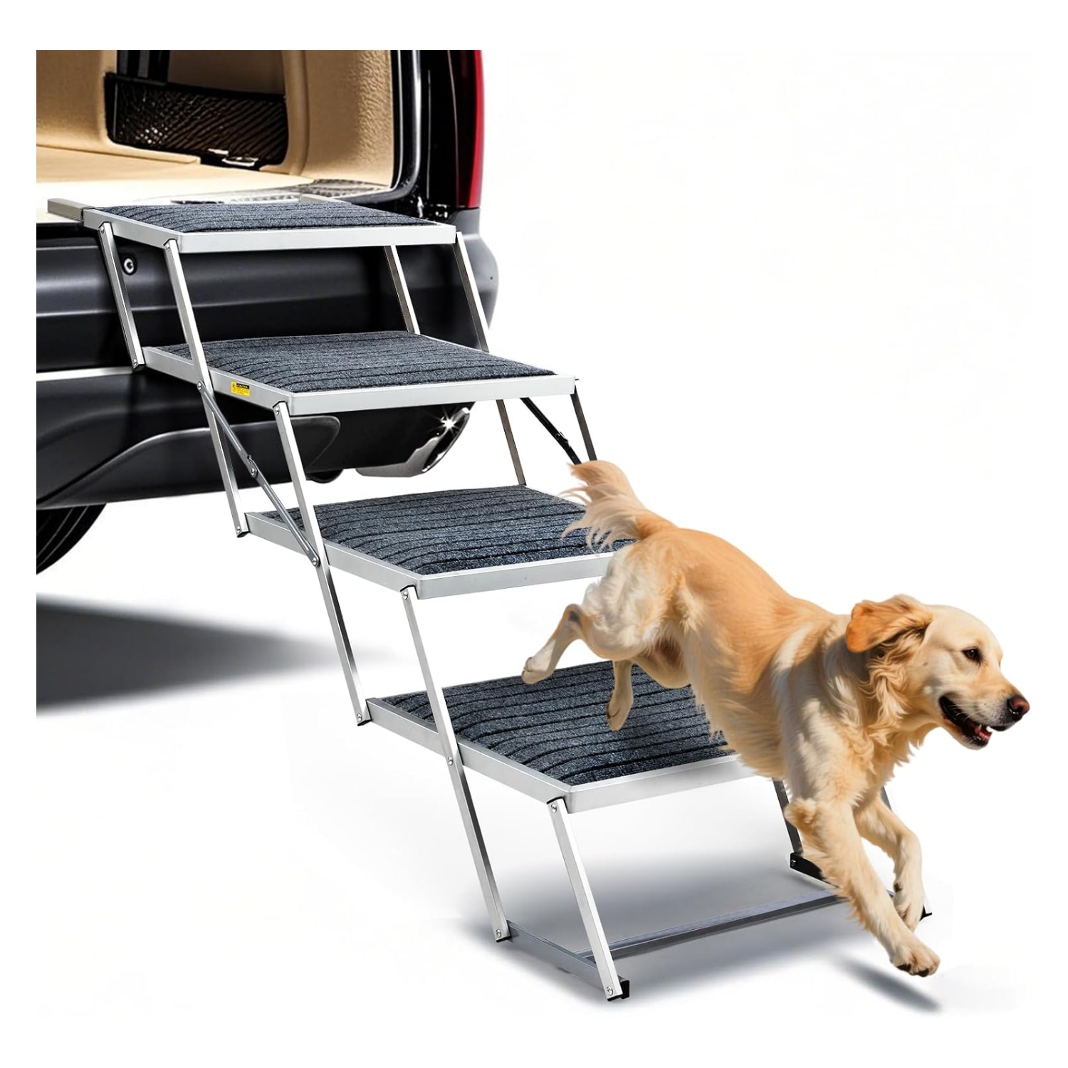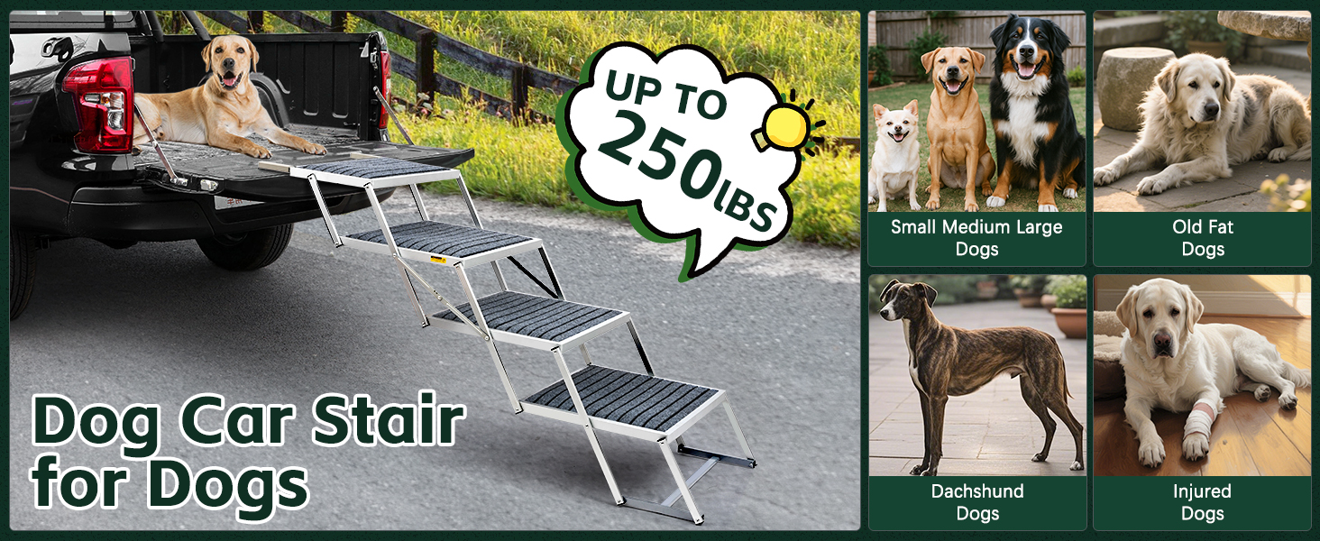 Construcción resistente y duradera: construido para durar, el escalón para perro para automóvil está hecho de un marco de aleación de aluminio resistente al óxido, que ofrece una resistencia y durabilidad superiores. Cada paso puede soportar hasta 250 libras, por lo que es perfecto para razas más grandes. Esta construcción resistente garantiza un uso duradero, protegiendo las articulaciones y rodillas de tu mascota de tensiones o lesiones innecesarias. Es el regalo perfecto para mantener a tu mascota segura y saludable
