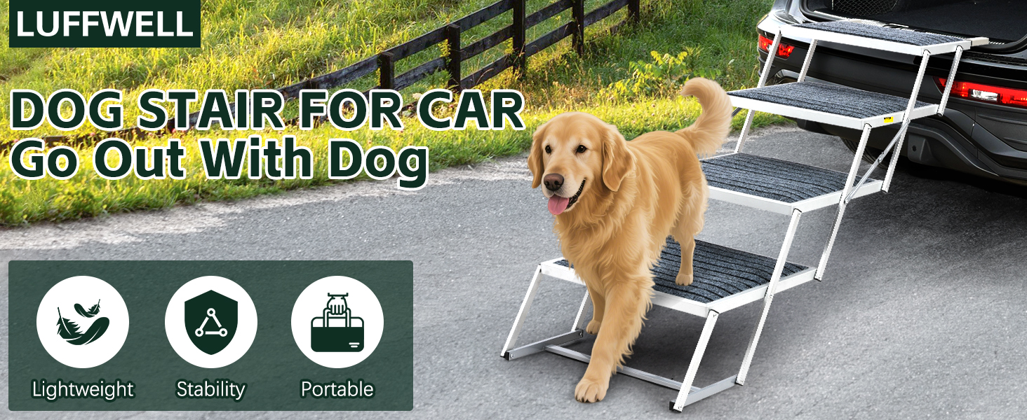 🚗 Uso versátil para múltiples escenarios: la escalera ancha para automóvil LUFFWELL Dog es increíblemente versátil, adecuada para automóviles, SUV, camiones, camas, sofás e incluso mesas de aseo o veterinario. Sus 4 escalones extra anchos hacen que sea fácil para perros grandes navegar, mientras que el diseño ligero garantiza que puedas llevarlo a cualquier lugar. Perfecta para viajes, picnics, campamento o uso diario en casa, esta escalera para perros es esencial para cualquier dueño de mascotas que valore la comodidad y seguridad de su perro