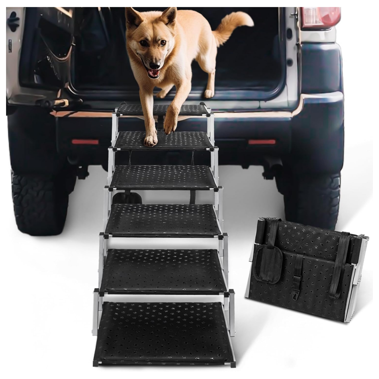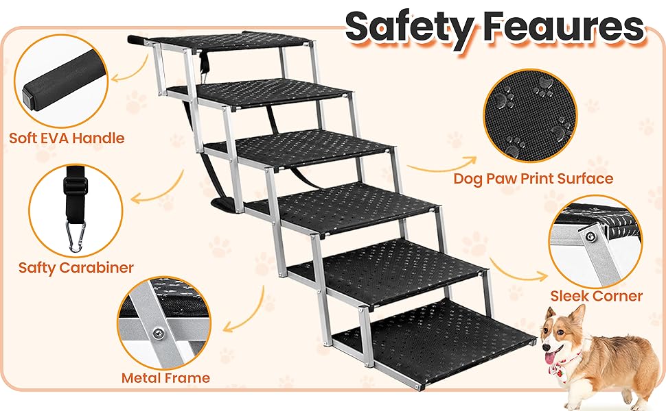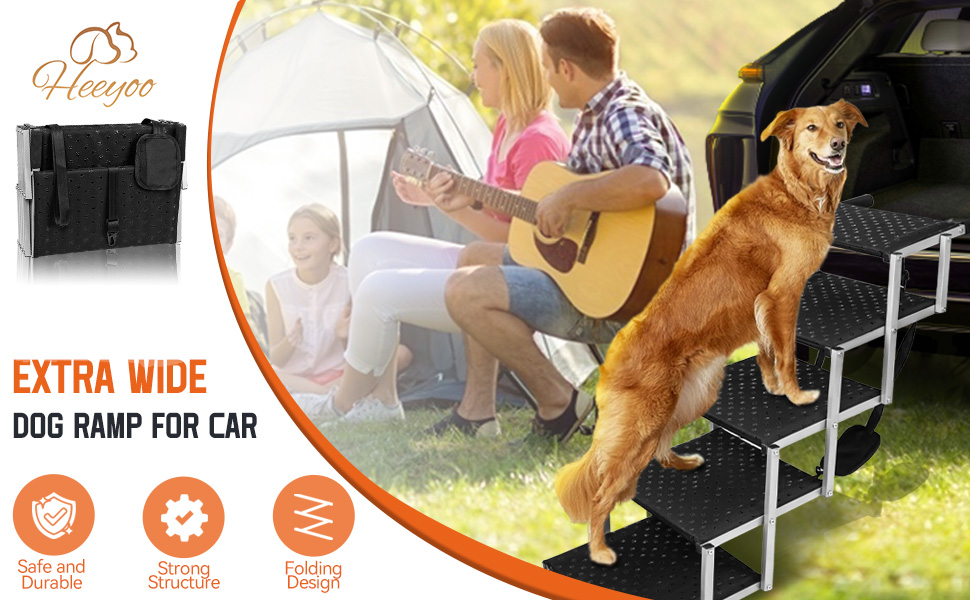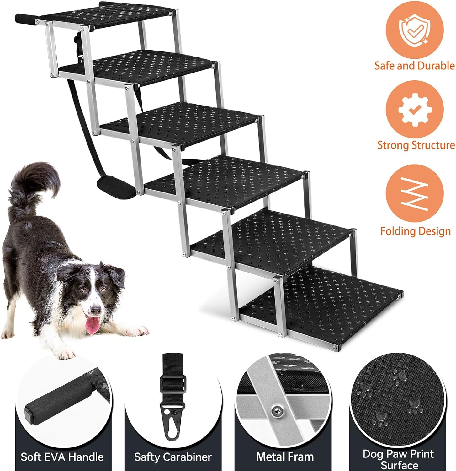 Fácil de instalar y almacenar: las escaleras grandes para mascotas de Heeyoo no tienen complicaciones, fáciles de instalar y transportar. Con un diseño compacto y plegable, no ocupa demasiado espacio en el automóvil, por lo que es posible llevar a tu mascota a viajar contigo.