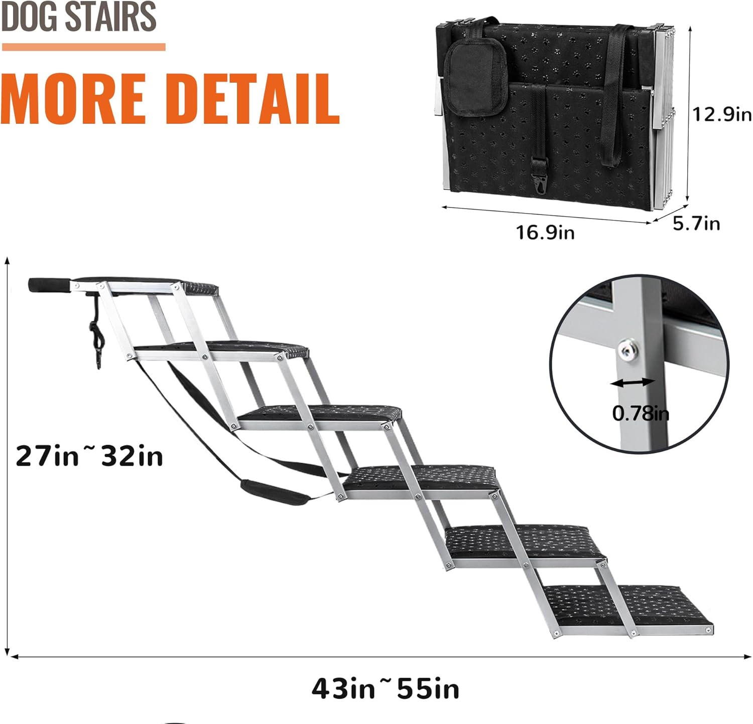 Altura ajustable: nuestras escaleras de coche para perros se pueden ajustar a una altura entre 27 y 32 pulgadas. Mide antes de realizar el pedido y ten en cuenta que para puertas laterales, asegúrate de que tu apertura sea mayor de 27 pulgadas.