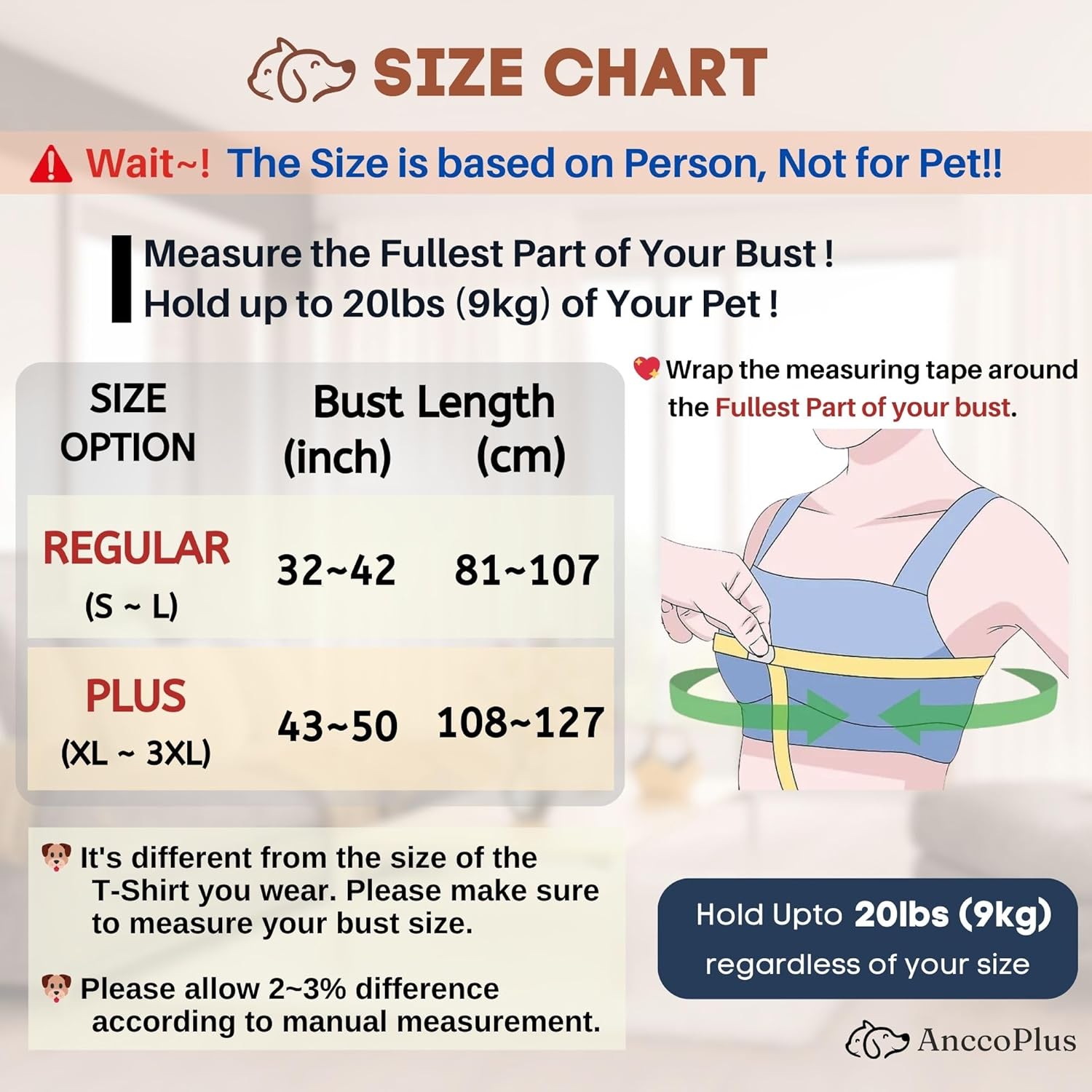 Diseño frontal ergonómico y manos libres: el transportador de mascotas AnccoPlus para mascotas pequeñas está diseñado para ser seguro, cómodo para llevar a tu mascota en la parte delantera. Este diseño único de nuestro transportador para perros pequeños proporciona manos libres, minimizando eficazmente la tensión de espalda, hombros y cuello. Ya sea que tus mascotas sean recién nacidas, envejecidas, lesionadas, ciegas o que se están recuperando de una cirugía, nuestro bolso para perro te permite llevarlas cerca de tu pecho, proporcionando una sensación de seguridad que reduce eficazmente la ansiedad y el estrés de tu mascota