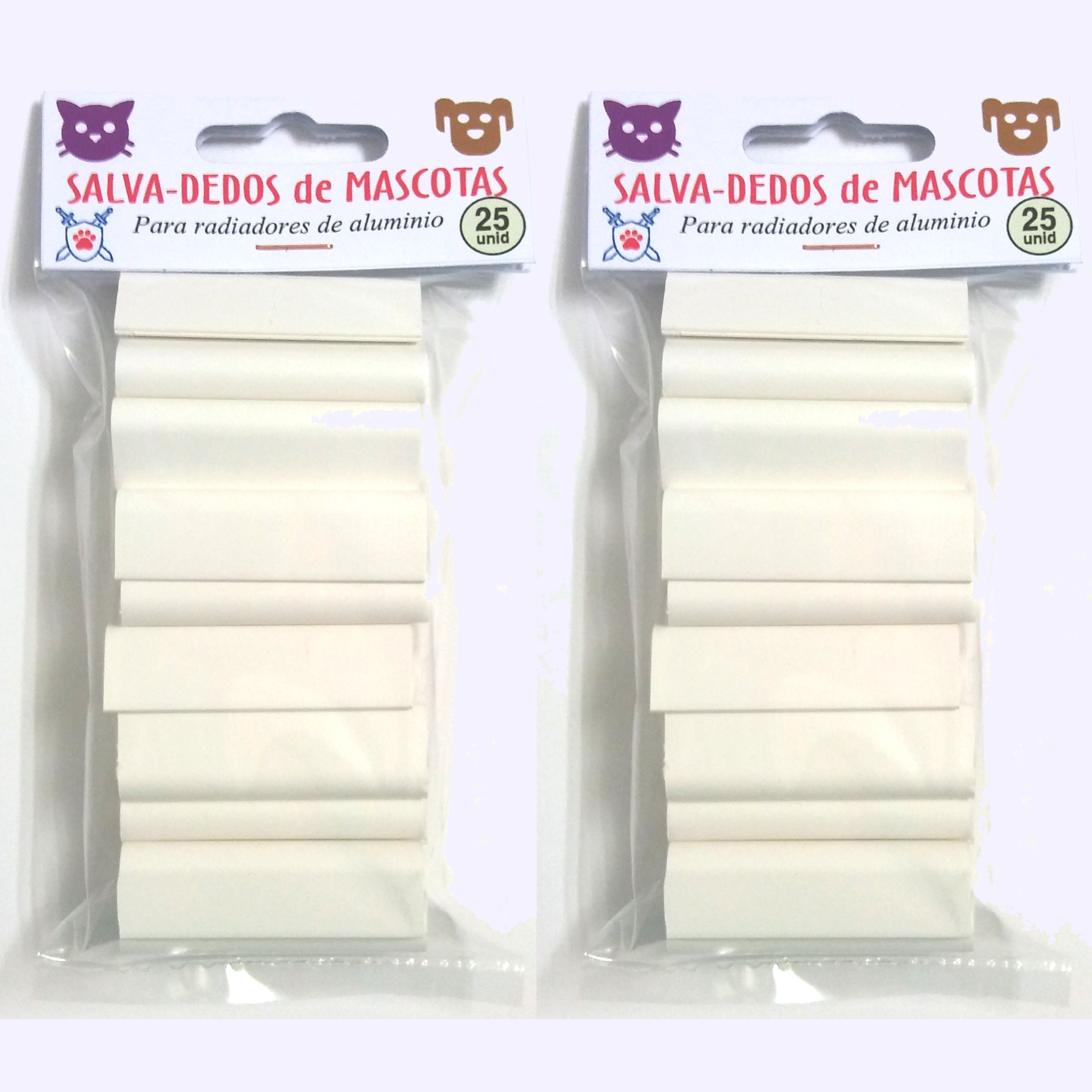 DESCRIPCIÓ GENERAL LA TRAMPA DEL RADIADOR Si convius amb gats, fures o gossos petits i els radiadors de casa teva estan compostos per mòduls d'alumini (els més habituals) és molt possible que ja t'hagi ocorregut i si no és així, és molt possible que aviat et passarà. Tu saps que la curiositat dels animals (especialment la dels gats) és infinita i els porta a pujar a sobre de tot i a tocar-ho tot. Qualsevol veterinari sap que constantment ocorren accidents casolans amb les mascotes veient-se obligats a atendre cremades, trencaments d'ossos, esquinços...etc. Si de debò estimes les teves mascotes, has de posar els mitjans necessaris per protegir l'entorn on desenvolupa la seva vida evitant qualsevol element o circumstància que li pugui fer mal. Sense saber-ho, hi ha trampes a casa teva que poden produir-los mal, i fins i tot acabar amb la seva vida!!! Un d'aquests paranys són els RADIADORS D'ALUMINI modulars, compostos per elements units entre si i la unió dels quals, de vegades, es converteix en un parany mortal per als gats i altres petites mascotes. A la part superior del frontal, a la unió entre 2 mòduls del radiador observaràs un "EMBUT" en el qual els gats solen introduir un dels seus dits. Si això passa, el moviment reflex de l'animal serà estirar la mà cap a si mateix, introduint (baixant) més i més el dit dins del solc existent entre els mòduls del radiador. Si es dóna aquesta circumstància, l'animal quedarà atrapat sense remei i començarà a recargolar-se per intentar treure el dit sense èxit. L'única sortida és anar corrent amb un tornavís i introduir-lo entre els 2 mòduls del radiador per deformar la xapa fins aconseguir treure el dit, amb sort sense trencaments ni esquinços. IMAGINA QUE AIXÒ PASSA QUAN TU NO ESTÀS A CASA L'animal no podrà treure la mà, cridarà, et trucarà, plorarà... però no aconseguirà ajuda. Si acaba arrencant-se el dit de quall pot acabar dessagnant-se o patir un xoc pel dolor. Si roman enganxat al radiador i depenent de les circumstàncies (si el radiador està calent, o si és molt el temps que romangui només a casa) podria fins i tot acabar morint. NO ÉS UNA BROMA, AQUESTS ACCIDENTS JA HAN PASSAT MILERS DE VEGADES És el moment d'actuar i posar els mitjans perquè això mai no passi al teu petit/a. Els salva-dits són petites peces de plàstic que es col·loquen fàcilment per cobrir aquests embuts i evitar que els animals puguin introduir-hi els dits. Com els radiadors, són de color blanc, i resulten molt discrets. Suporten perfectament les altes temperatures i poden romandre col·locats de manera indefinida durant tot l'any. Si ja temies aquest problema pots oblidar-te de cobrir, tapar amb draps, folrar o col·locar lletges i cutres fundes als radiadors. Com podeu veure, la solució és aquesta i col·locant aquestes peces es va acabar el problema. CARACTERÍSTIQUES BÀSIQUES: *Mesures(mm):50x15x9 *Pes(grs):2 *Forma:Veure imatge *Materials:PVC *Colors:blanc ALTRES CARACTERÍSTIQUES: -Pes unit: 2,5 grs. -Longitud: 5cms. -Material: PVC resistent a la calor. -Forma de pinça ideal per a la fixació a la xapa d'alumini. -Dissenyat per col·locar entre 2 mòduls de radiadors d'alumini (veure fotos). INCLOU: -50 protectors per a entre-mòduls de radiadors d'alumini. RECOMANACIONS: -Col·loqueu els protectors principalment a la part superior dels embuts frontals. -Per a més protecció pot col·locar-los als embuts superiors inclinats i als darrers. -Per a la fixació permanent pot enganxar-los usant una cola resistent a la calor. AVÍS: -Mantenir fora de l'abast dels nens.