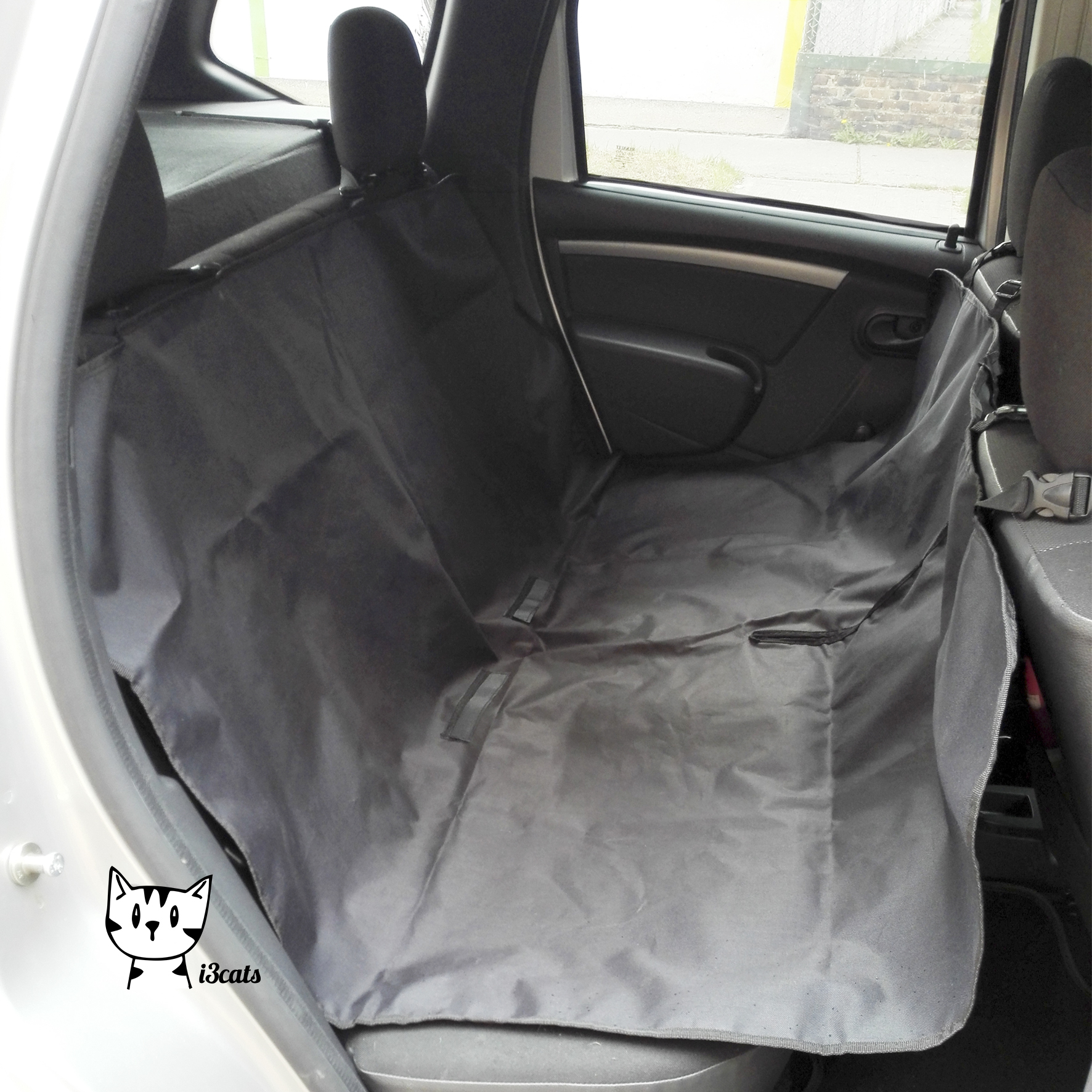 Nuestro forro i3cats, es 100% hecho en Colombia, impermeable, con herrajes fuertes de la mejor calidad, diseñado en forma de hamaca que también permite proteger la parte de atrás de las sillas delanteras, y una cremallera en el centro por si se necesita dejar solo un lado como hámaca y el otro lado libre para subir un pasajero. Además cuenta con refuerzos en la tela que se agarra a los posa-cabezas haciendo más seguro el forro y con una menor probabilidad de desgarre por el peso de los perros.