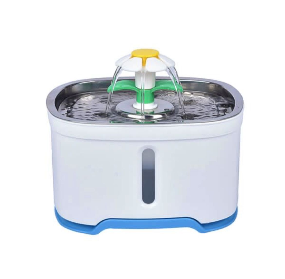 Fuente para mascota cuadrada de plato metálico en acero inoxidable, medidor de agua y luz led.