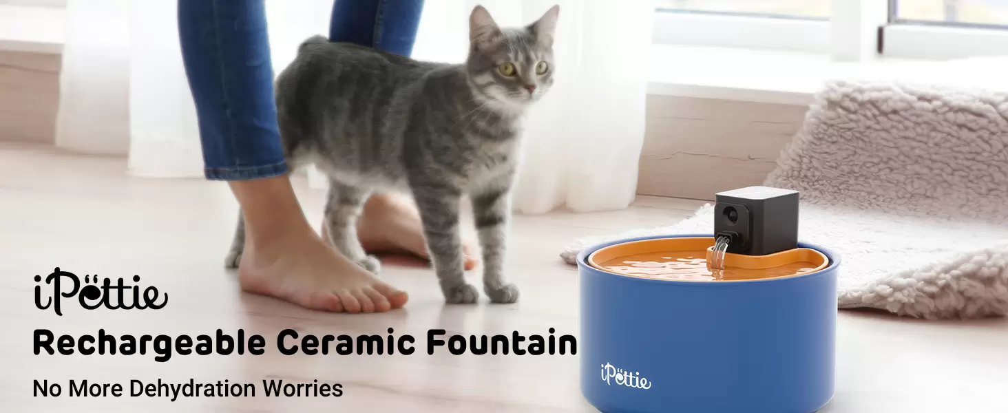 Fuente de cerámica inalámbrica de 3.5L. Material higiénico anti-acné, batería recargable, sensor de movimiento y alertas inteligentes. La opción más saludable y elegante para tu mascota.