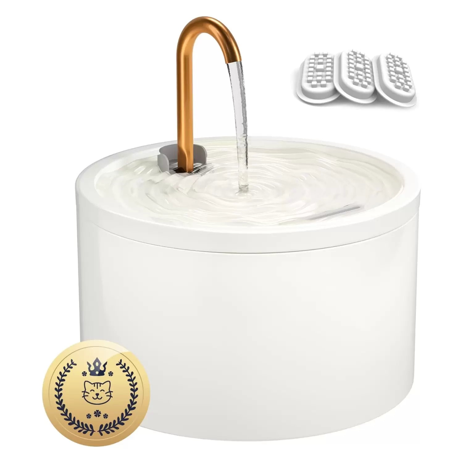 Atrae a las mascotas a beber más agua: dos modos de beber, un grifo que fluye libremente y una fuente burbujeante, imitan los arroyos naturales, alentando a los gatos a beber más y mantenerse hidratados. La hidratación adecuada ayuda a reducir los problemas urinarios y renales. La elegante boquilla de cobre mejora el sabor del agua minimizando los residuos metálicos, asegurando que las fuentes de agua MISFANS para gatos en interiores sean funcionales y elegantes.