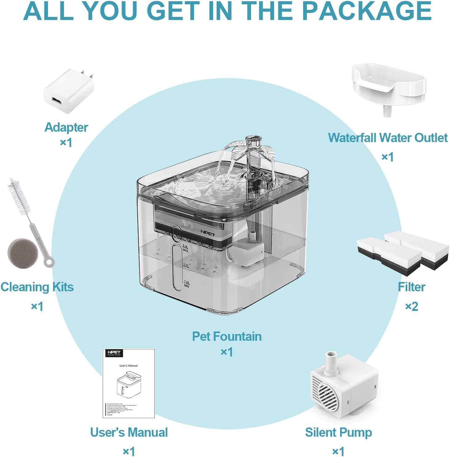 Concepto de diseño: transparencia total: es fácil saber cuándo limpiar y cambiar el agua, para que tu mascota siempre pueda beber agua limpia y saludable; diseño de módulos, estructura de componentes, fácil de instalar; el tanque de agua no tiene golpes adicionales, fácil de limpiar. Bomba ultra silenciosa y de bajo consumo, un 50% menos de ruido que los modelos más antiguos.