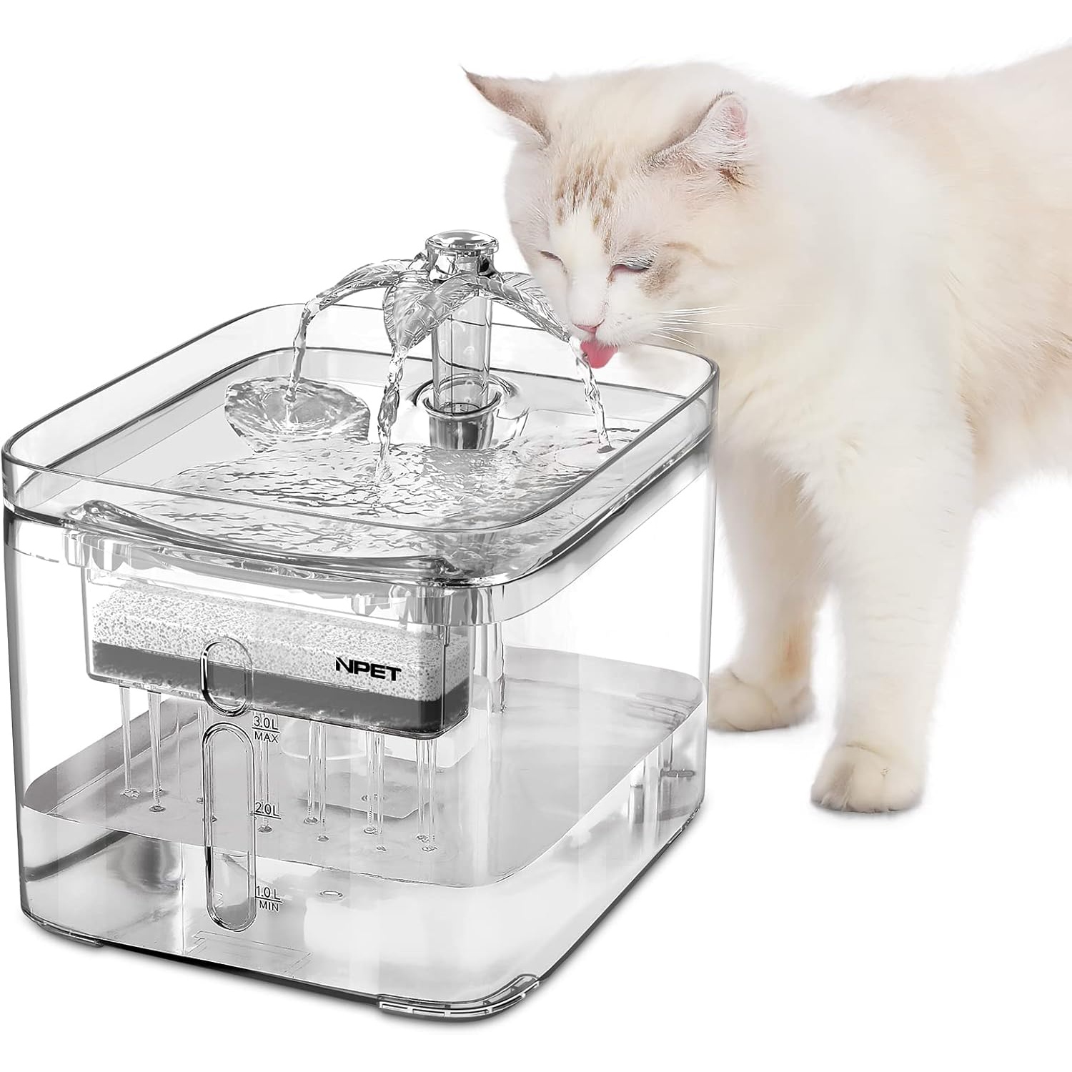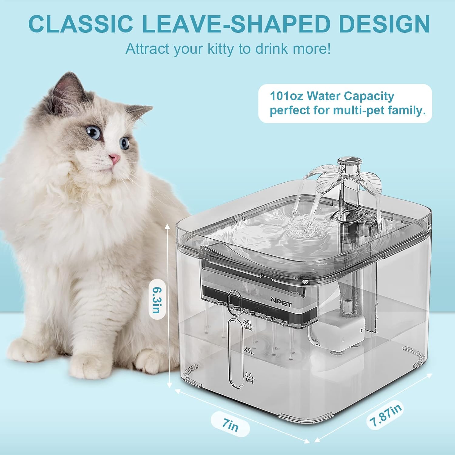 Gran capacidad de 3 litros: la capacidad de agua de 3 litros es ideal para perros, gatos, múltiples hogares de mascotas. No es necesario reponer agua con frecuencia y no solo puede satisfacer las necesidades de bebida de gatos, perros, pájaros y otras mascotas de varios tamaños, sino que también puede almacenar agua durante una semana, por lo que puedes salir unos días sin preocuparte por tus mascotas.