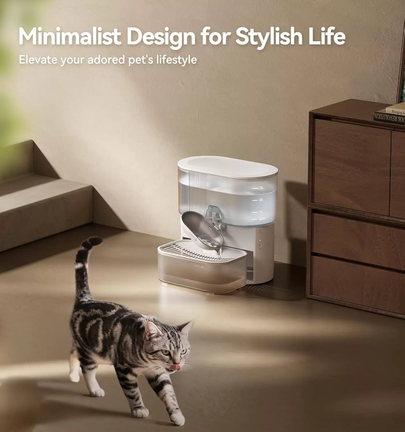 Esta es la primera fuente que realmente cambia las reglas del juego. A diferencia de las fuentes tradicionales que recirculan la misma agua a través de un filtro, este modelo cuenta con tanques independientes de agua limpia y residual. Su sistema de autolimpieza vierte automáticamente el agua rancia o con babas al tanque de residuos, asegurando que cada sorbo sea agua fresca y virgen. ¿Lo mejor? No utiliza filtros, eliminando para siempre los costos recurrentes y el mantenimiento semanal.
