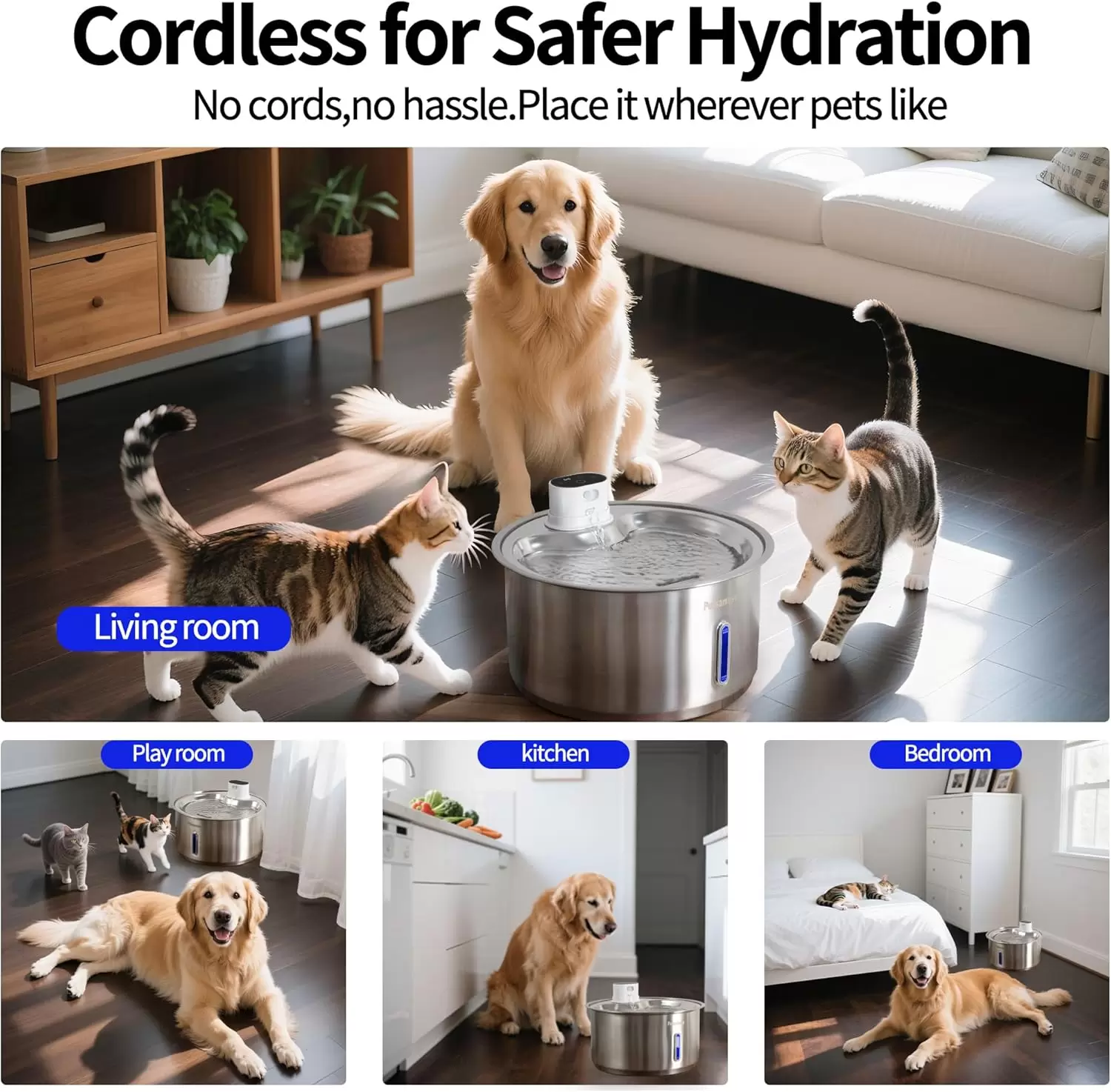 Fuente de Agua Inalambrica Acero Inoxidable 11 Litros Perros y Gatos con Sensor y 15 Filtros