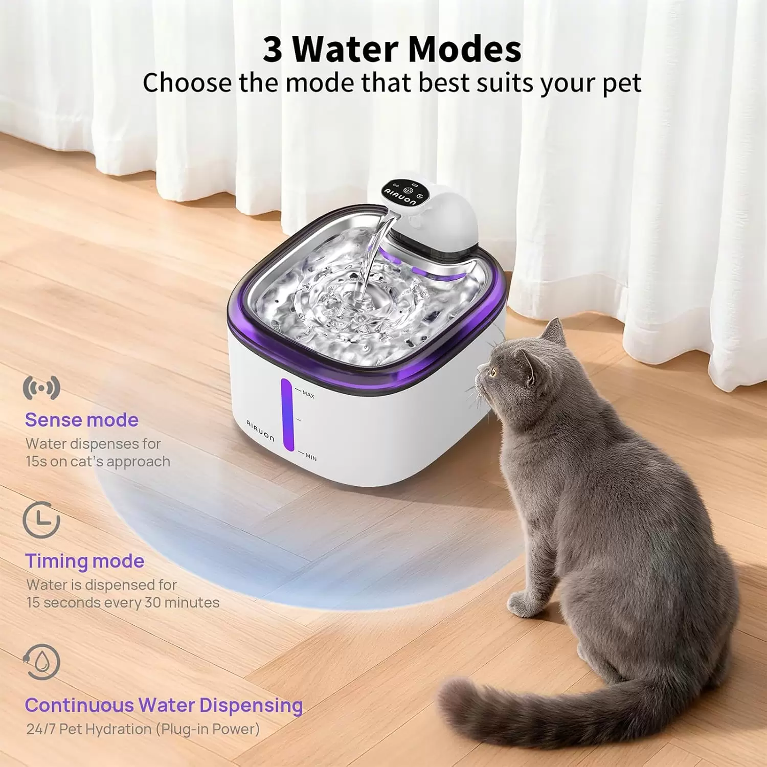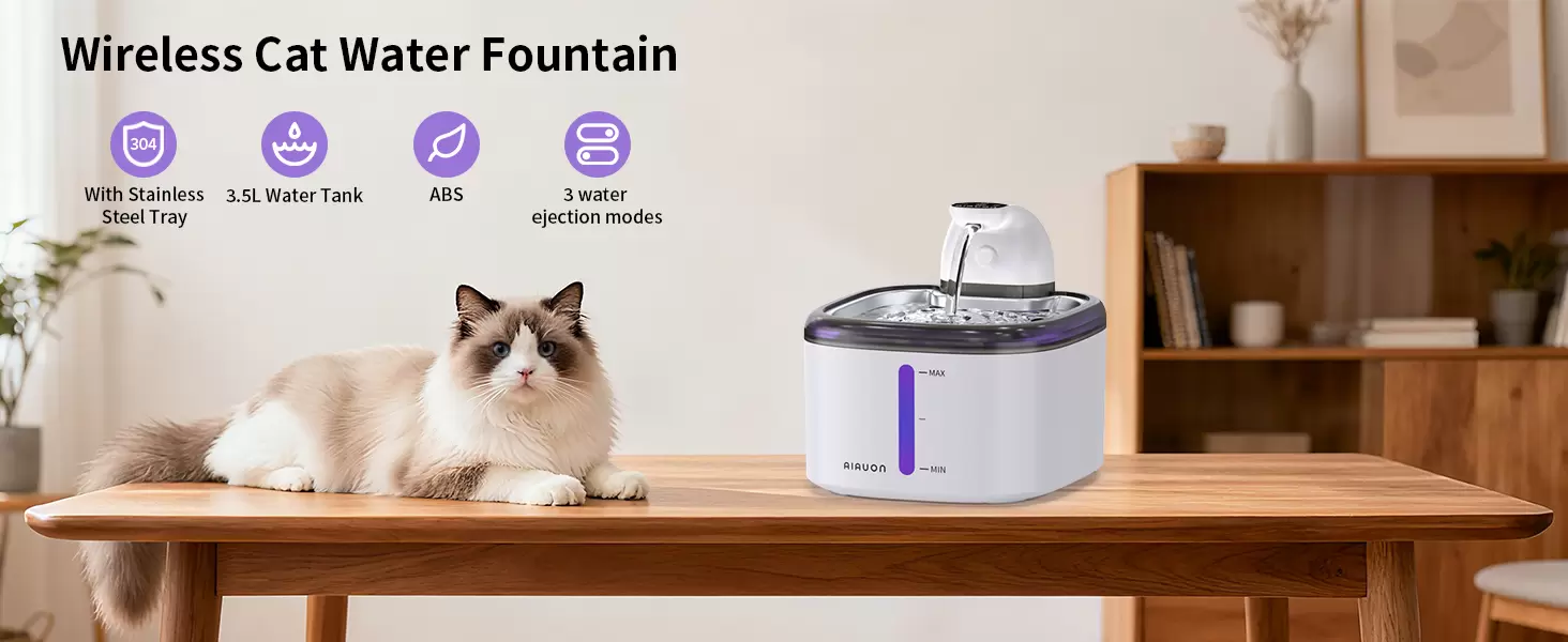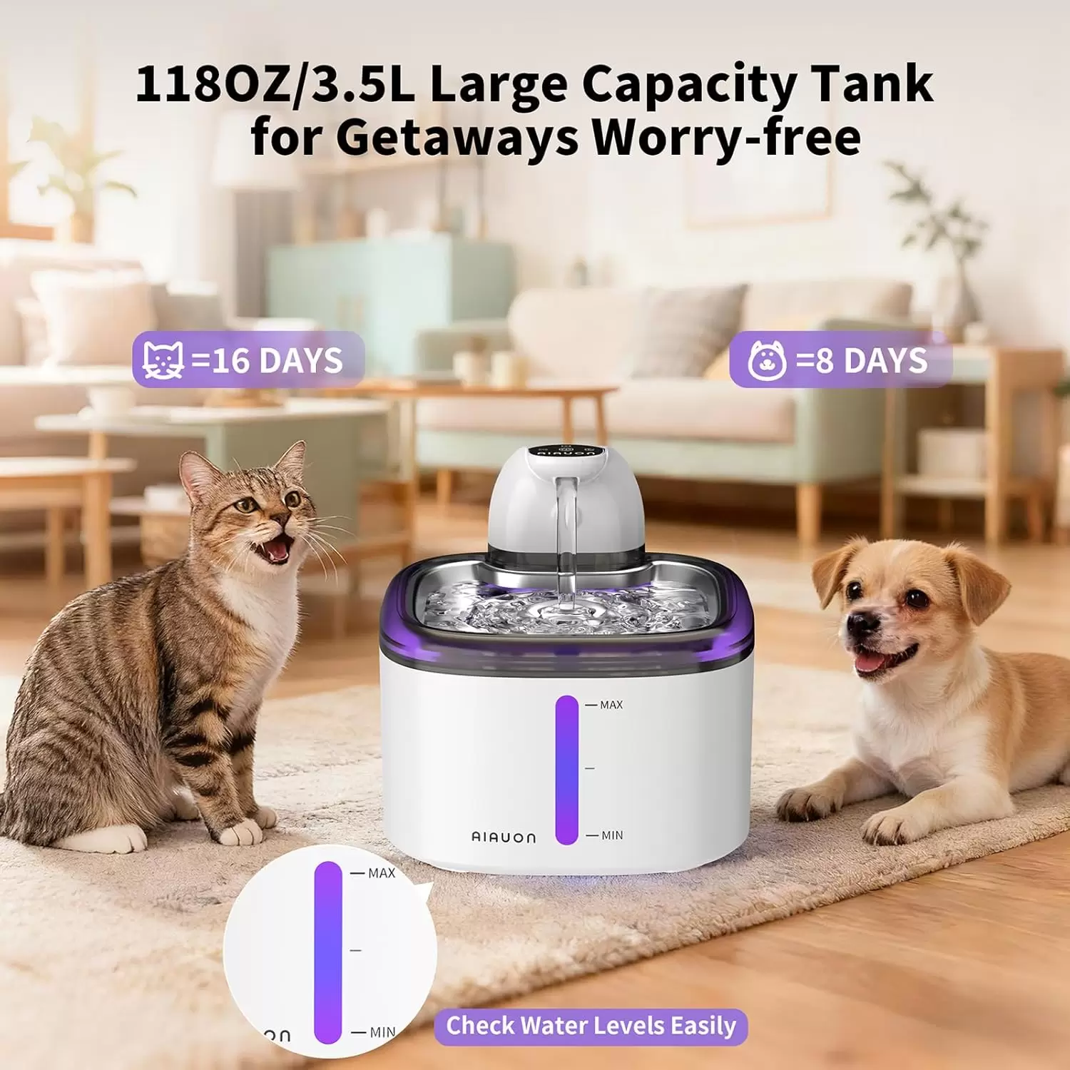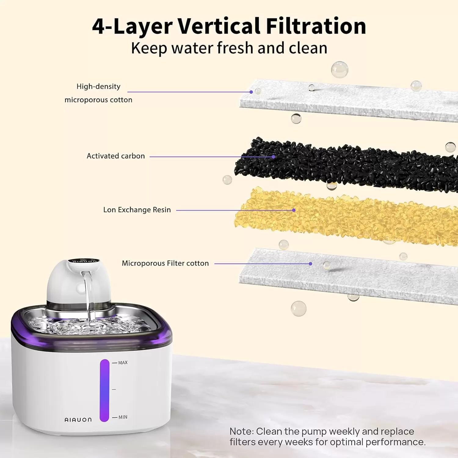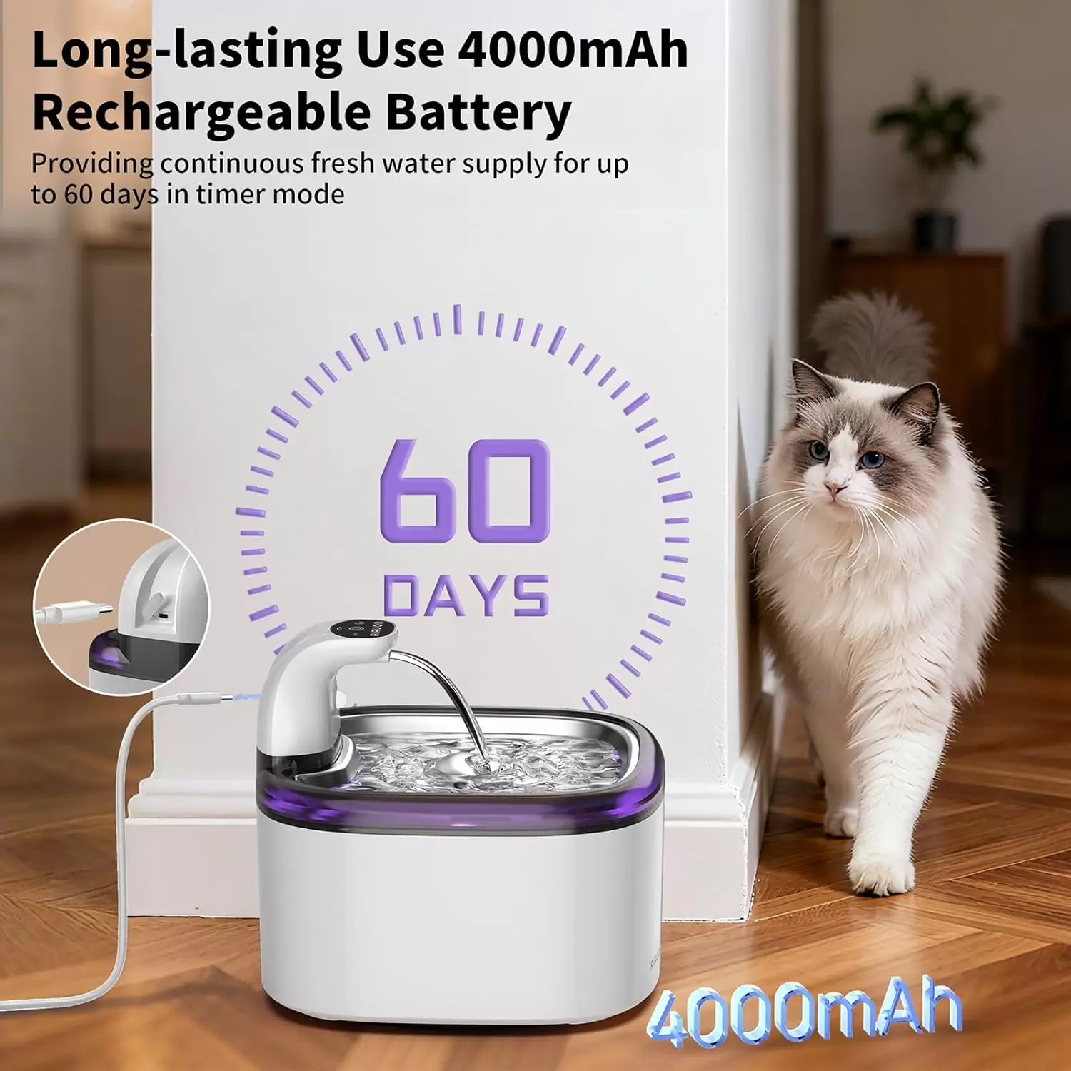 Pack completo con 5 filtros. Fuente inalámbrica de 3.5L con batería de 4000 mAh. Bandeja de acero inoxidable, sensor de movimiento y operación ultra silenciosa. La mejor opción calidad-precio.