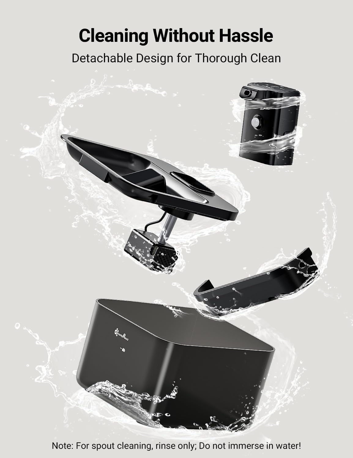 La limpieza es muy sencilla: la fuente de agua inalámbrica para gatos DownyPaws no contiene BPA y ayuda a prevenir el acné de las mascotas. Todas las piezas son fáciles de montar y desmontar, hace que sea muy fácil limpiar cada esquina sin problemas. NOTA: Para la limpieza de la boquilla, enjuague solamente, no sumerja el compartimento de la batería en agua