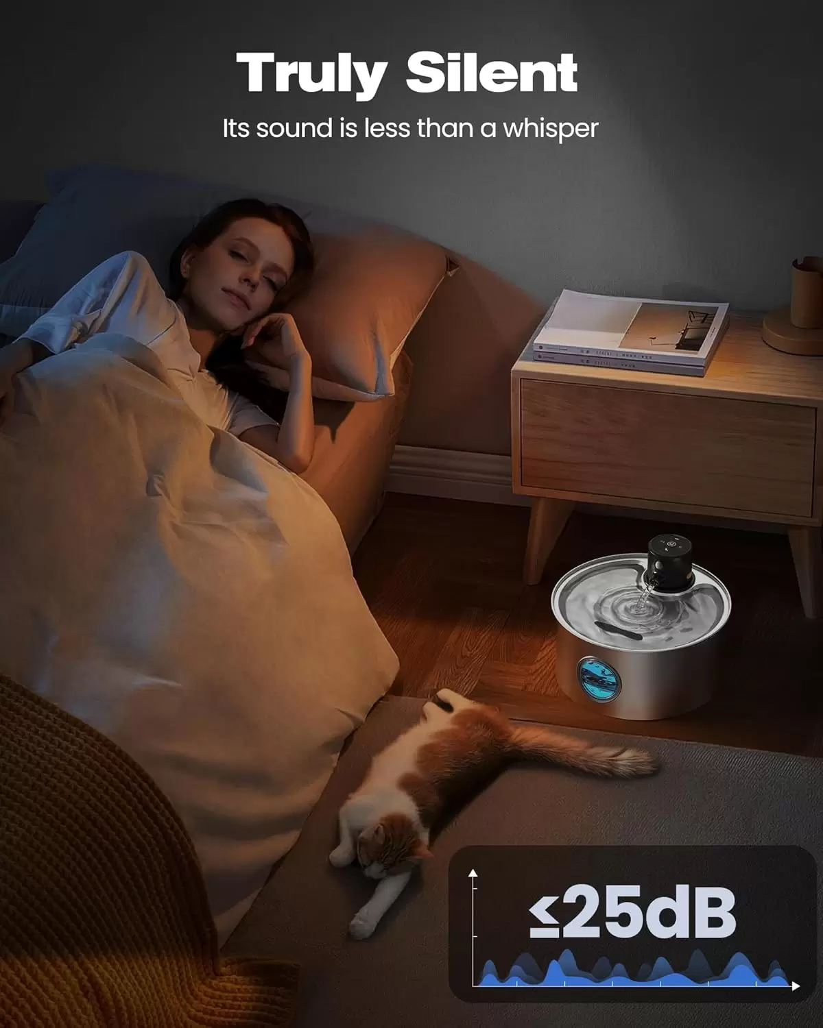 Limpieza silenciosa y fácil: funciona a ≤25 dB, las fuentes inalámbricas para gatos no molestarán la vida diaria. Todas las piezas se desmontan fácilmente para su limpieza. Es conveniente para que usted limpie y mantenga regularmente. Nota: No enjuague/sumerja el módulo de control maestro.