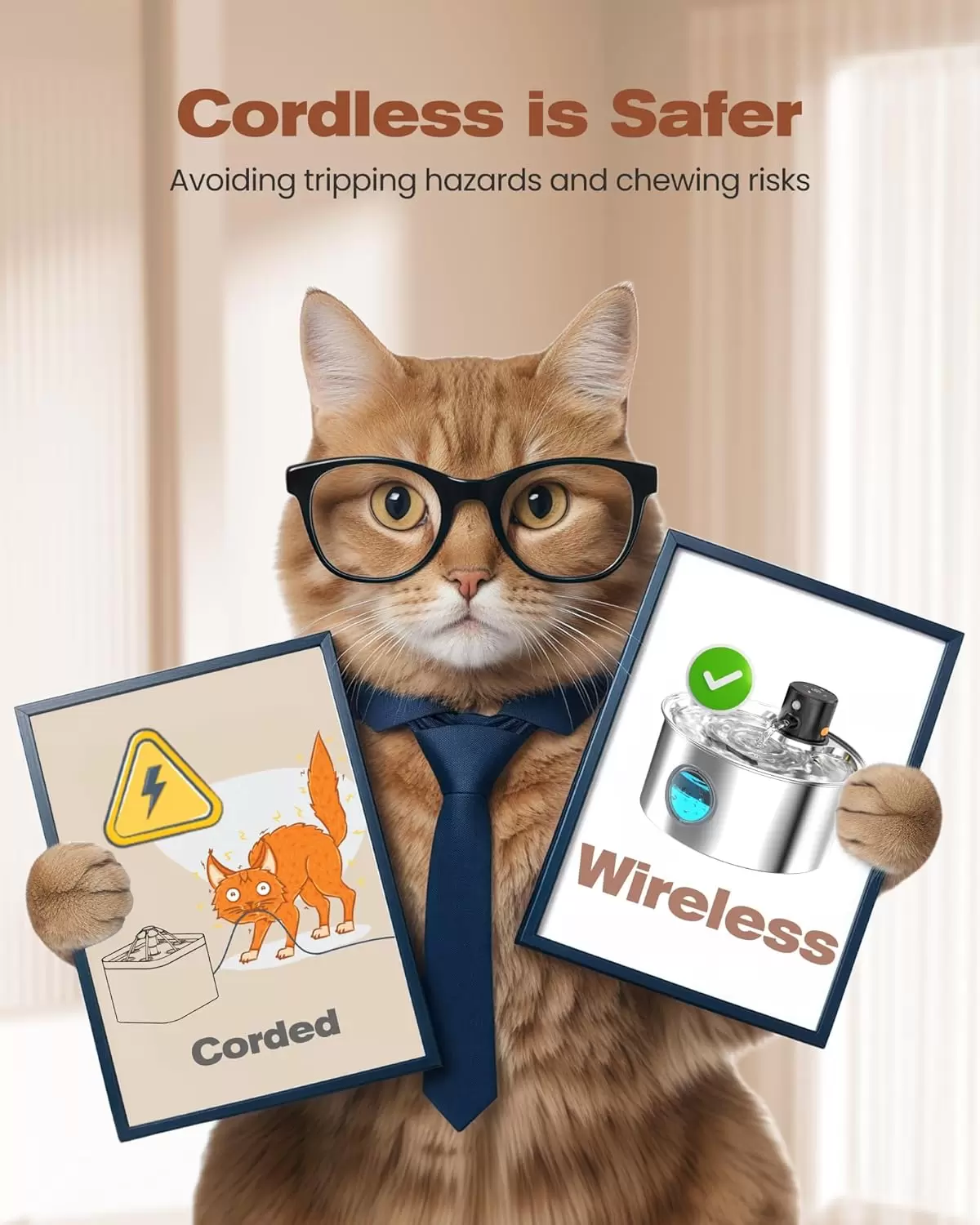 Nueva experiencia de beber mascotas: la fuente de agua inalámbrica para gatos ofrece agua potable fresca en cualquier lugar sin cables, ya sea en la sala de juegos, cocina, sala de estar o alféizar de la ventana. Anima a tus amigos peludos a beber más mientras evitan los peligros de tropiezos y los riesgos de masticación, asegurando una hidratación segura.