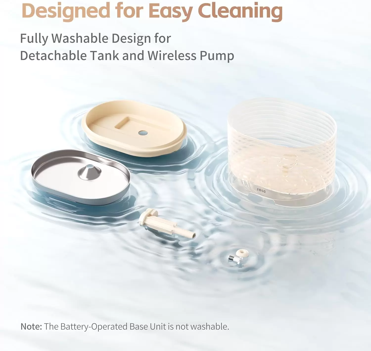 Fuente 100% Inalámbrica y WiFi. La única con bomba magnética (sin cables en el agua) y control por App. Batería de 5000 mAh, 2 Litros y acero inoxidable. La tecnología más avanzada para tu gato.