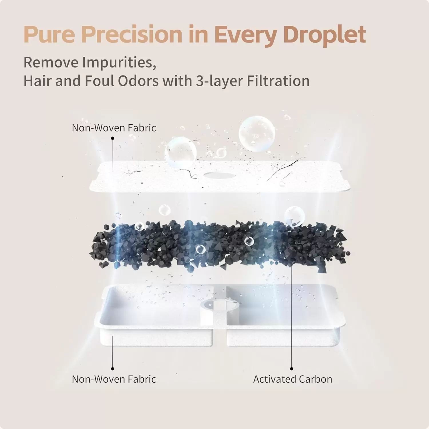 Higiene Premium: Bandeja de Acero Inoxidable 304 y sistema de filtración de 3 capas.