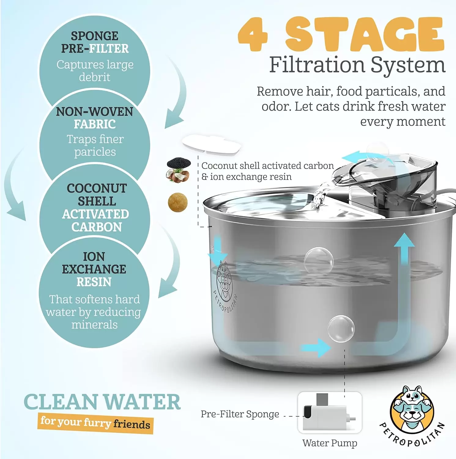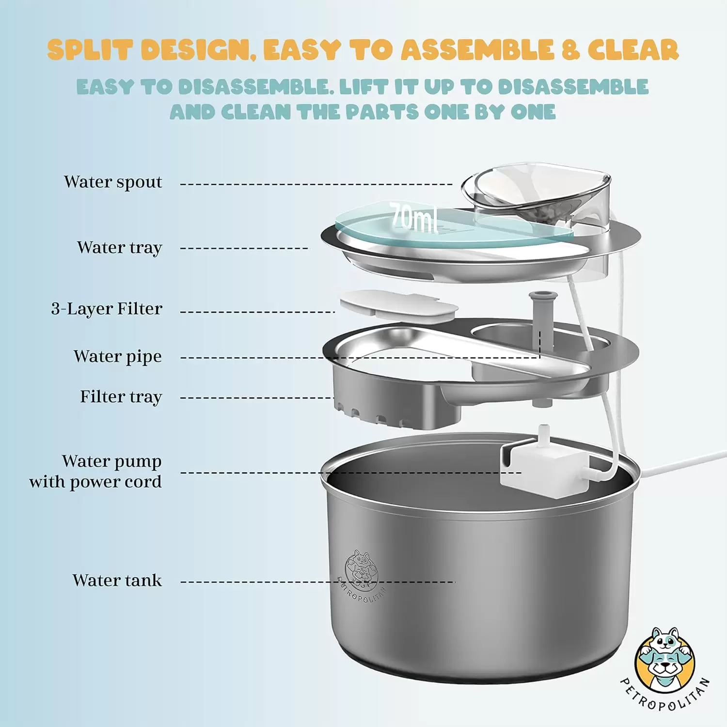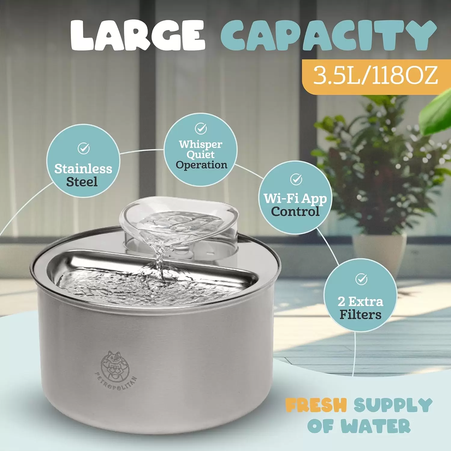 Fuente de Agua Inteligente WiFi Acero Inoxidable 3.5 Litros Gatos Control App