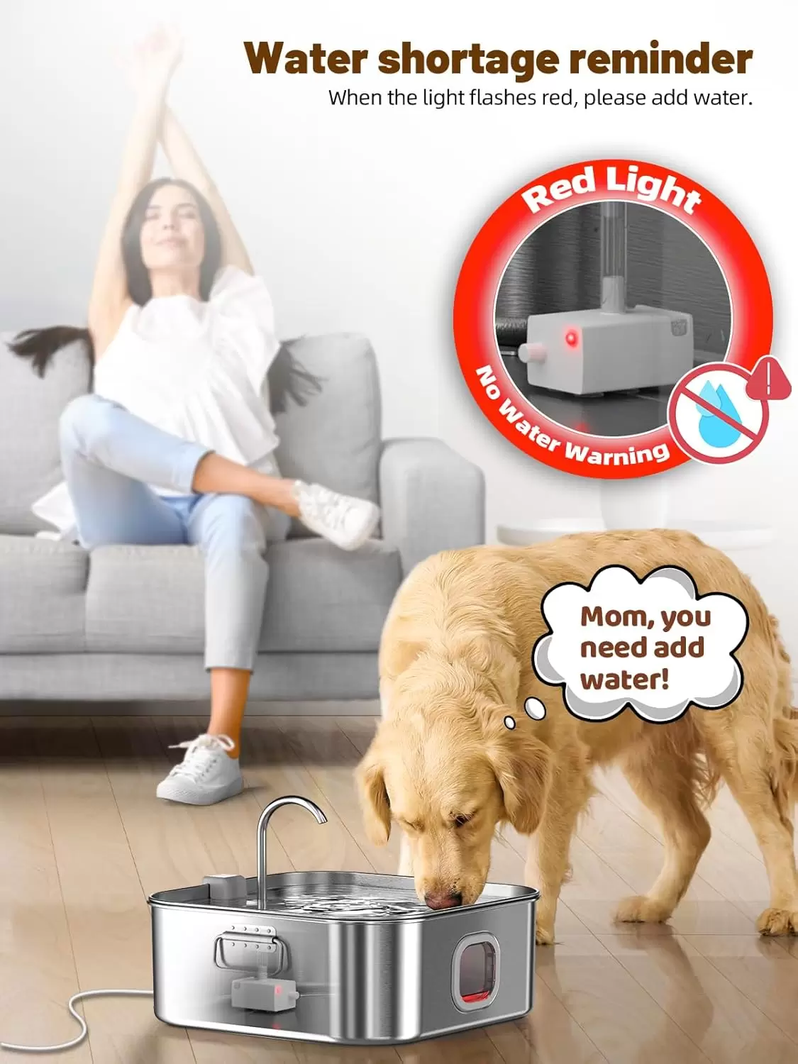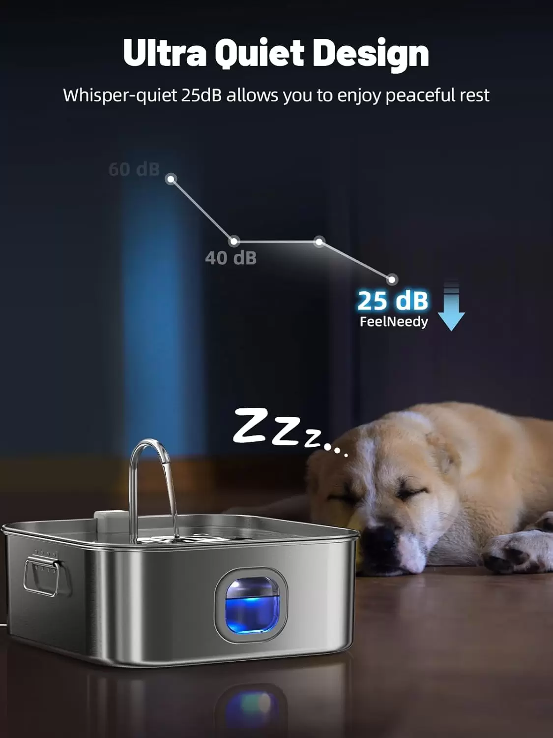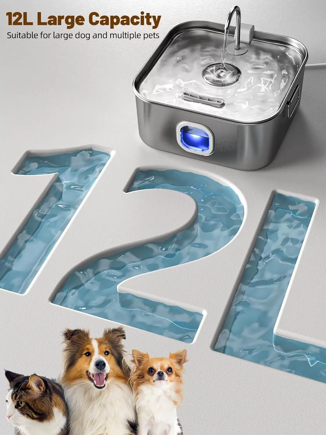 Fuente de Agua para Mascotas 12 L – Acero Inoxidable, Súper Silenciosa con Indicador LED