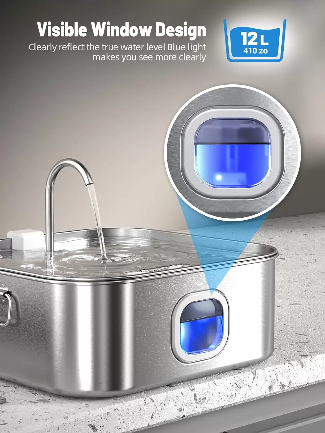 Ventana de nivel de agua visible: la fuente de agua para perros está diseñada con una ventana transparente, puede controlar el nivel de agua restante en cualquier momento y rastrear fácilmente la situación de bebida de su mascota.